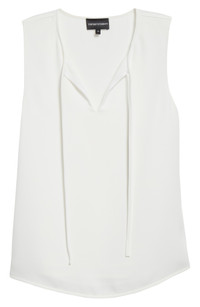 Emporio Armani Tie Neck Sleeveless Top in Off White at Nordstrom