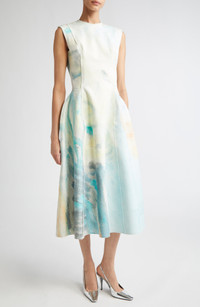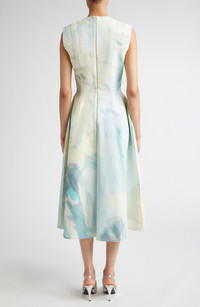 A dreamy abstract print by artist Kaye Donachie transforms this cotton dress sculpted with exposed seams into a wearable work of art. The look is part of Erdem's collaboration with the artist to design a collection that explores timeless silhouettes, enhanced by the dreamlike quality of Kaye’s artworks and their evocative palette Hidden back-zip closure Crewneck Sleeveless Side-seam pockets Stretch lining 100% cotton Dry clean Made in the UK Designer Clothing