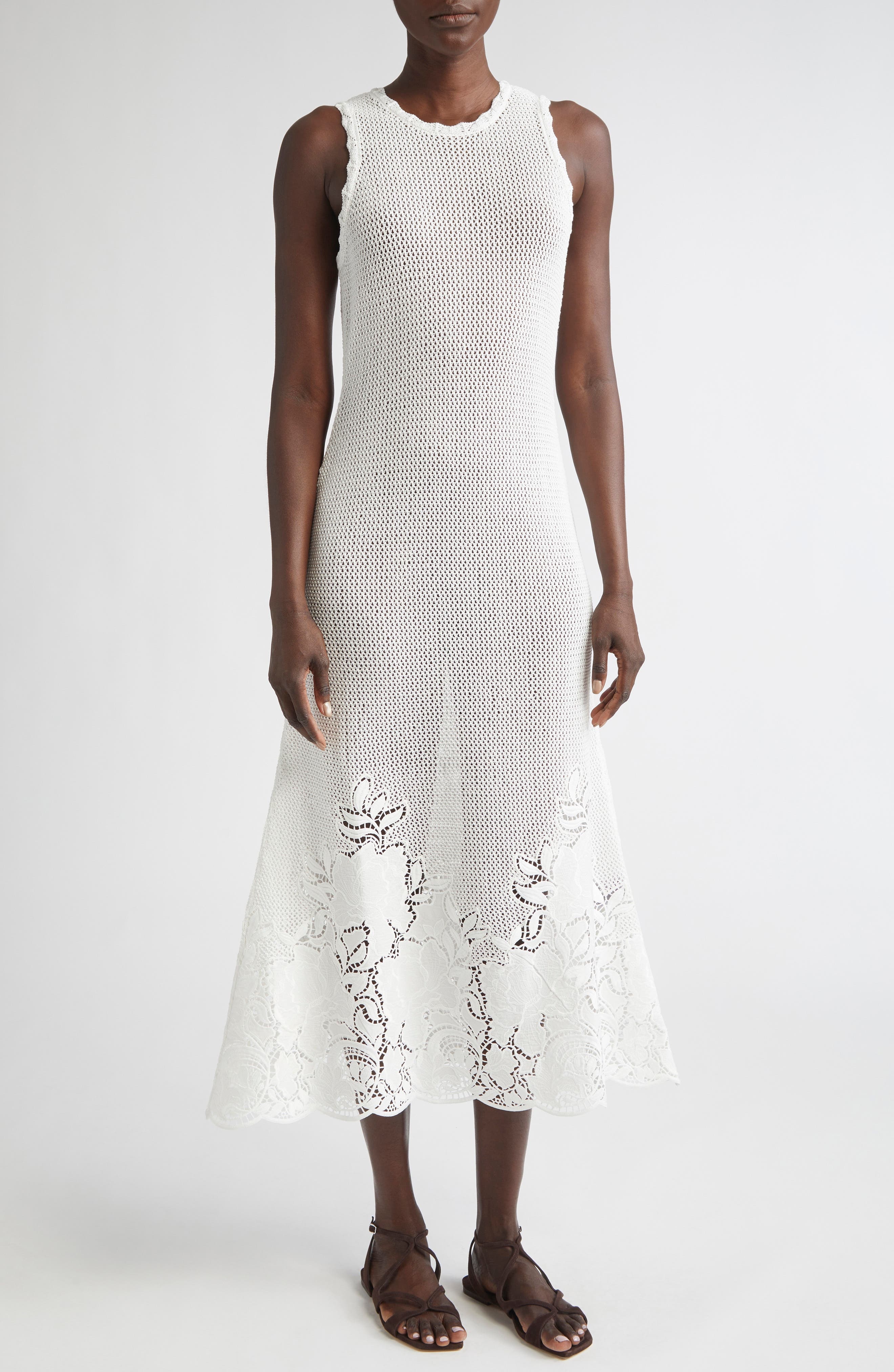 Erdem Open Knit Sleeveless Midi Dress in Ivory at Nordstrom