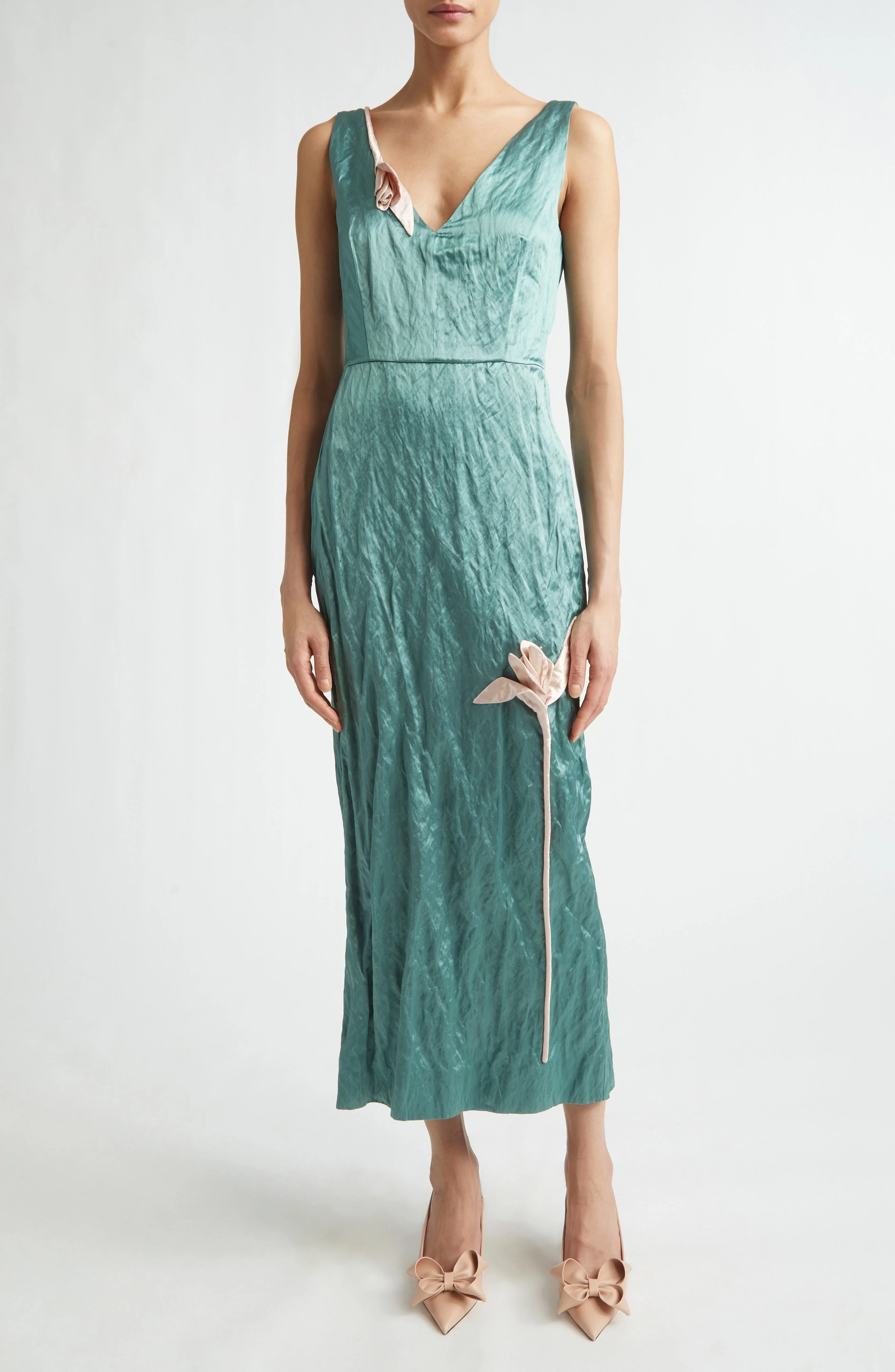 Erdem Tulip Appliqué Crinkled Metallic Satin Gown in Eau De Nil at Nordstrom