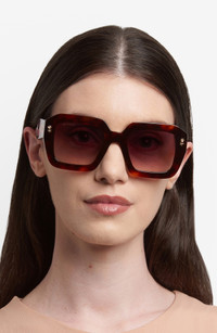 Signature floral motifs accent the rectangular frames on bold acetate sunglasses featuring gradient lenses and gleaming logos along the translucent temples. 52mm lens width; 22mm bridge width; 145mm temple length 100% UV protection Acetate Imported