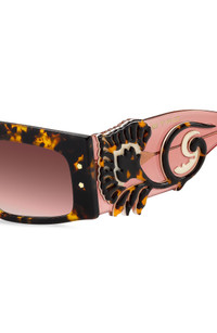 Bring the look of springtime wherever you go in Italian-made sunglasses designed with engraved florals at the temples that bloom out in an eye-catching 3D effect. 54mm lens width; 18mm bridge width; 145mm temple length 100% UV protection Acetate Made in Italy