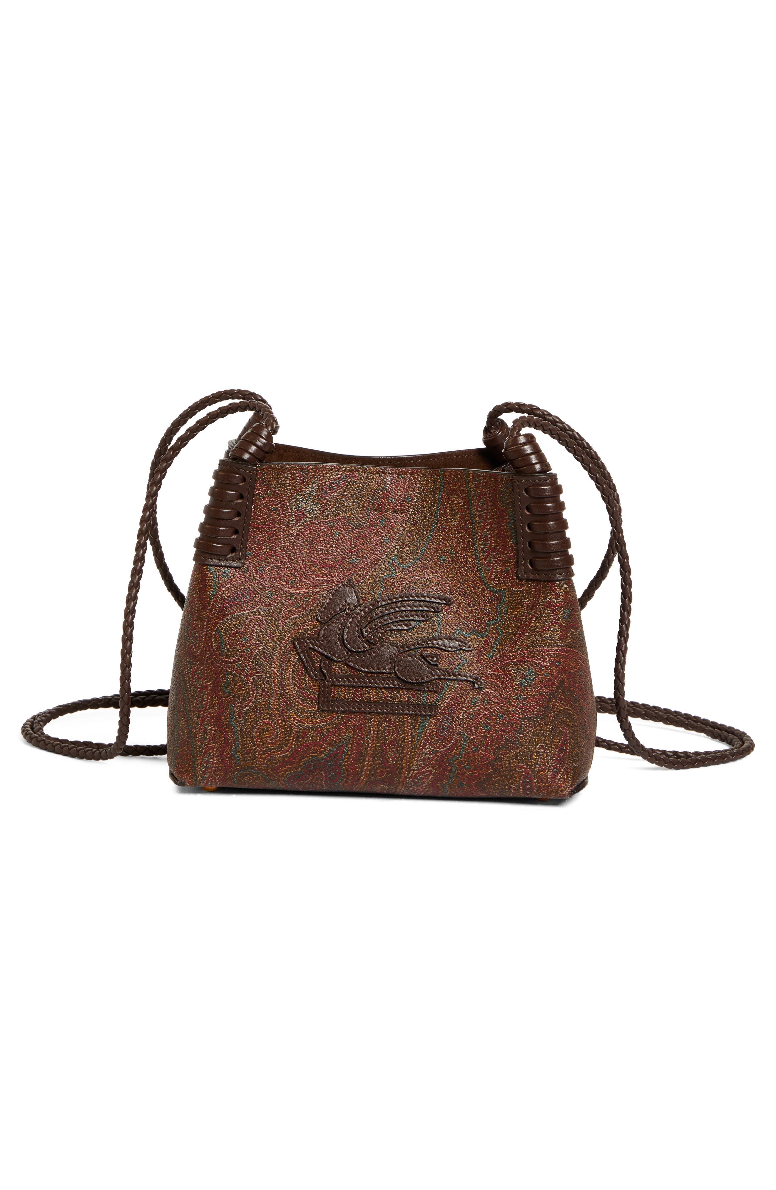 Signature paisley and a Pegaso-logo applique bring Etro's iconic energy to this coated-canvas crossbody bag crafted in a scaled-down, structured silhouette. Bridge-clip closure Crossbody straps Structured silhouette with flat base and protective metal feet Coated canvas with leather trim Made in Italy Designer Handbags
