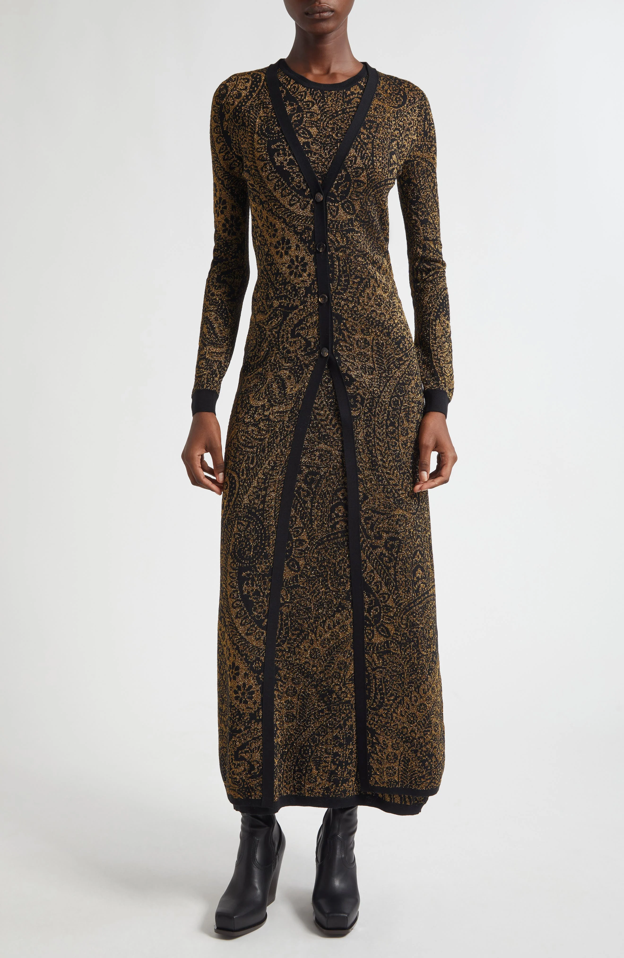 Etro Metallic Paisley Longline Cardigan in Brown Multicolor at Nordstrom