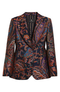 Get the '60s groove going in this single-breasted jacket featuring house-signature paisley swirls reinterpreted in jeweltone brocade. Two-button closure Peaked lapels Four-button cuffs Chest patch pocket; front patch pockets Back vent Lined 100% polyester Dry clean Made in Italy Designer Clothing