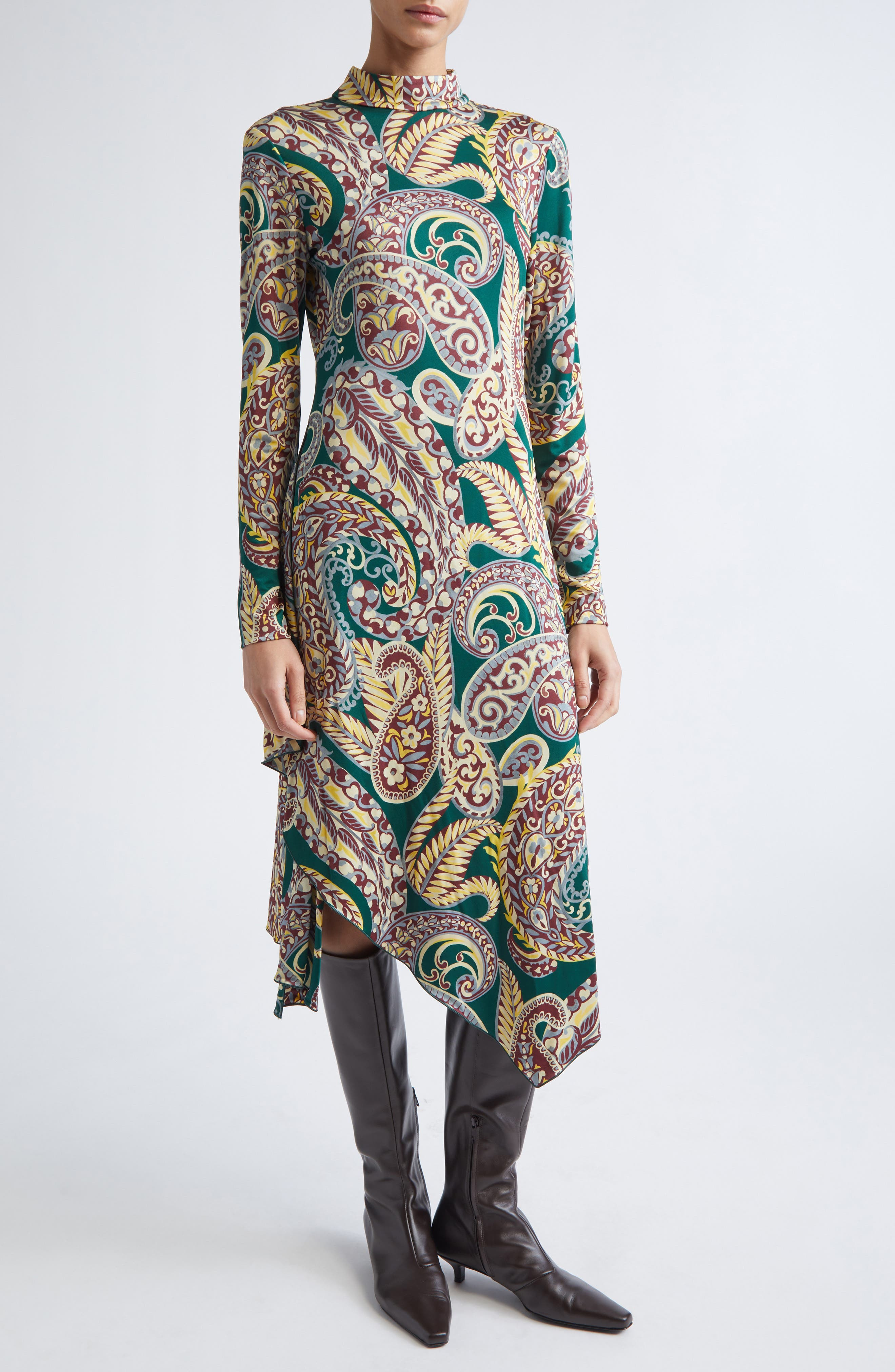 Etro Paisley Long Sleeve Open Back Midi Dress in Stampa Fondo Verde at Nordstrom