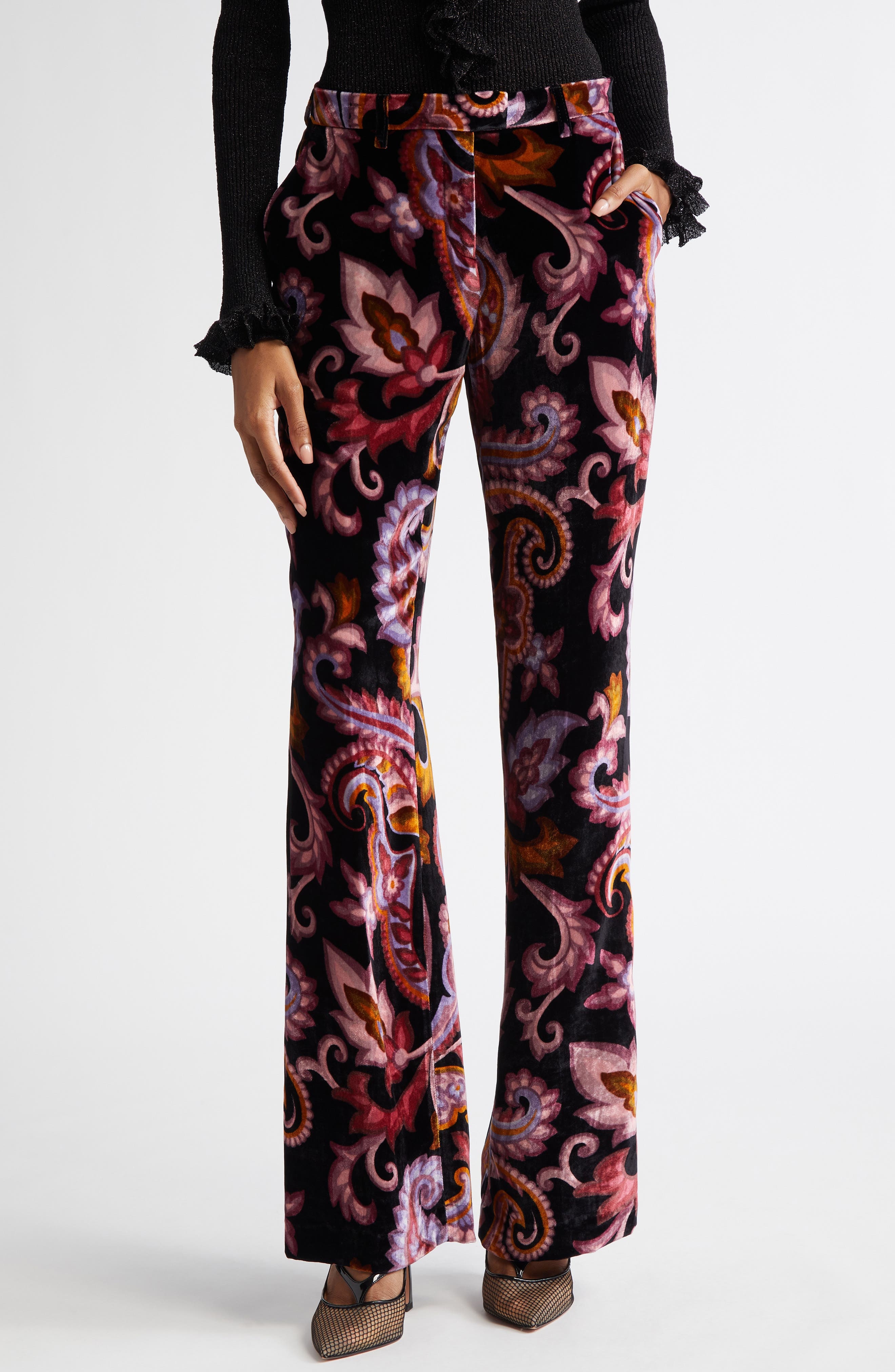 Etro Paisley Print Velvet Straight Leg Pants in Printed Black Base at Nordstrom