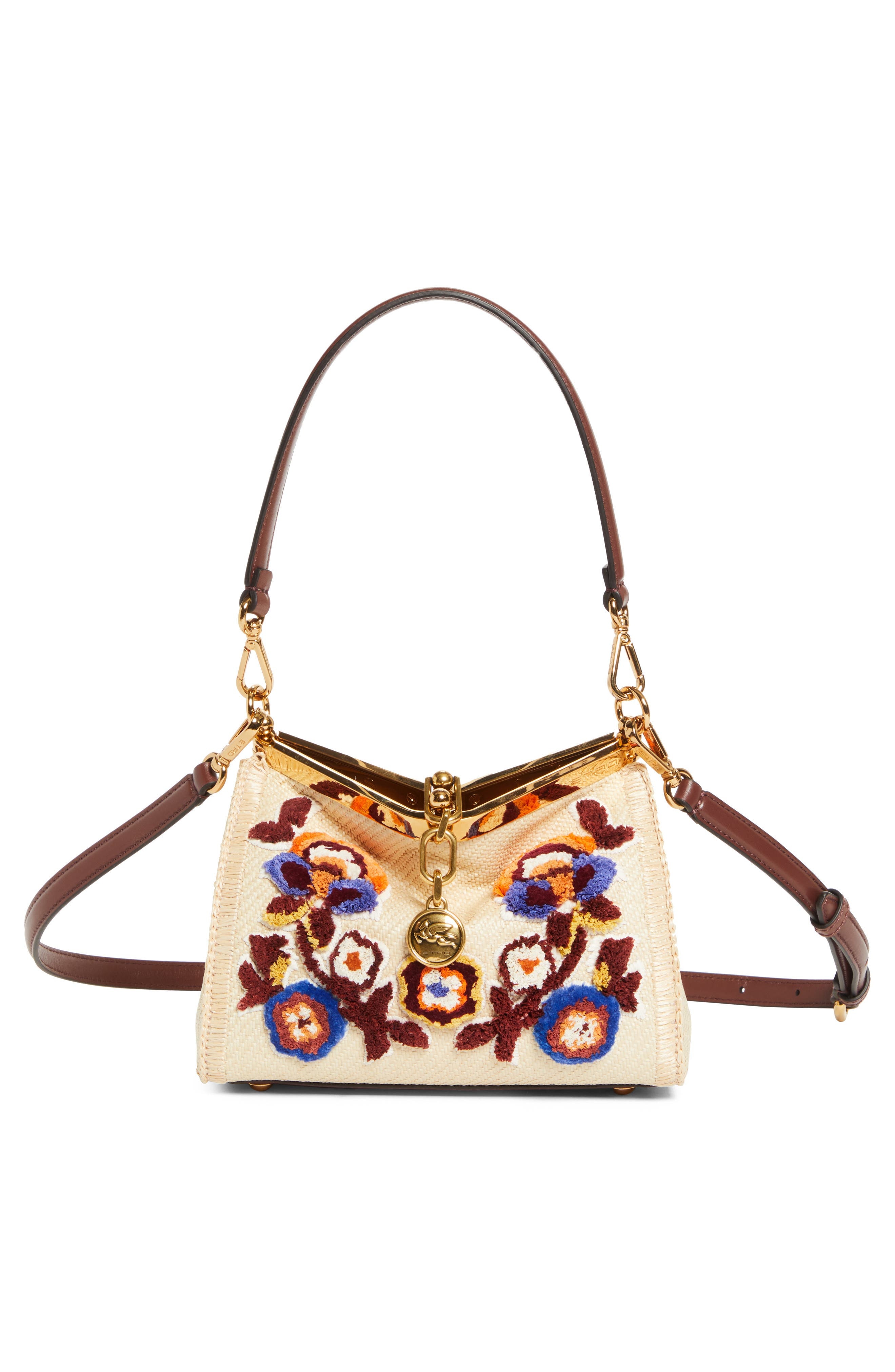 Etro Small Vela Floral Embroidered Raffia Shoulder Bag in M0121 Beige at Nordstrom