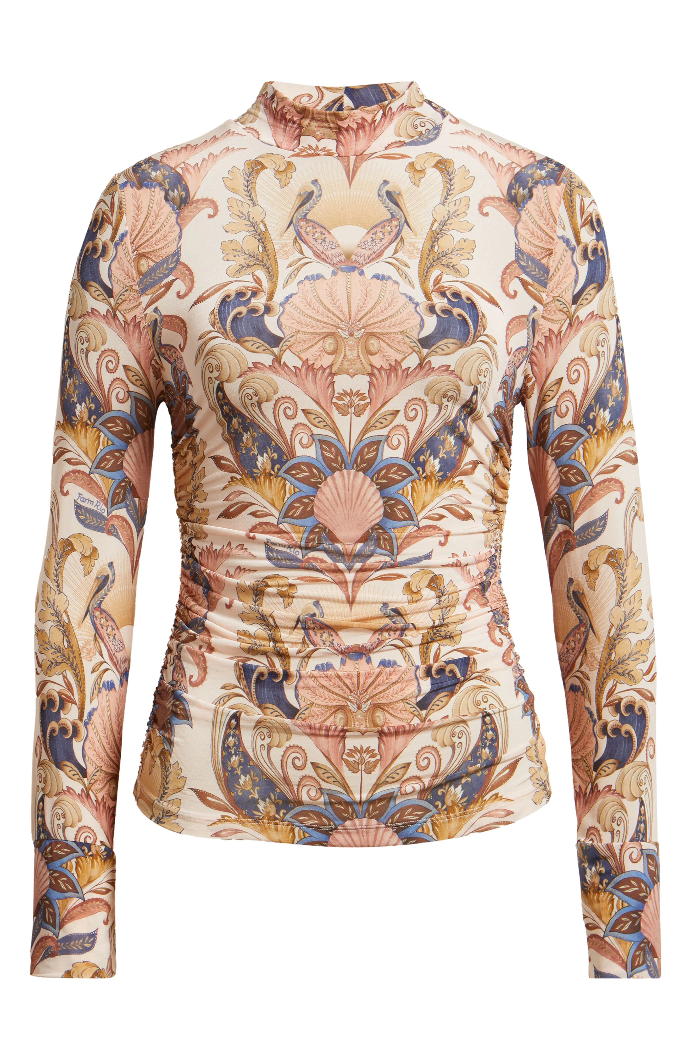 FARM Rio Sea Garden Ruched Mock Neck Top in Sea Garden Scarf at Nordstrom