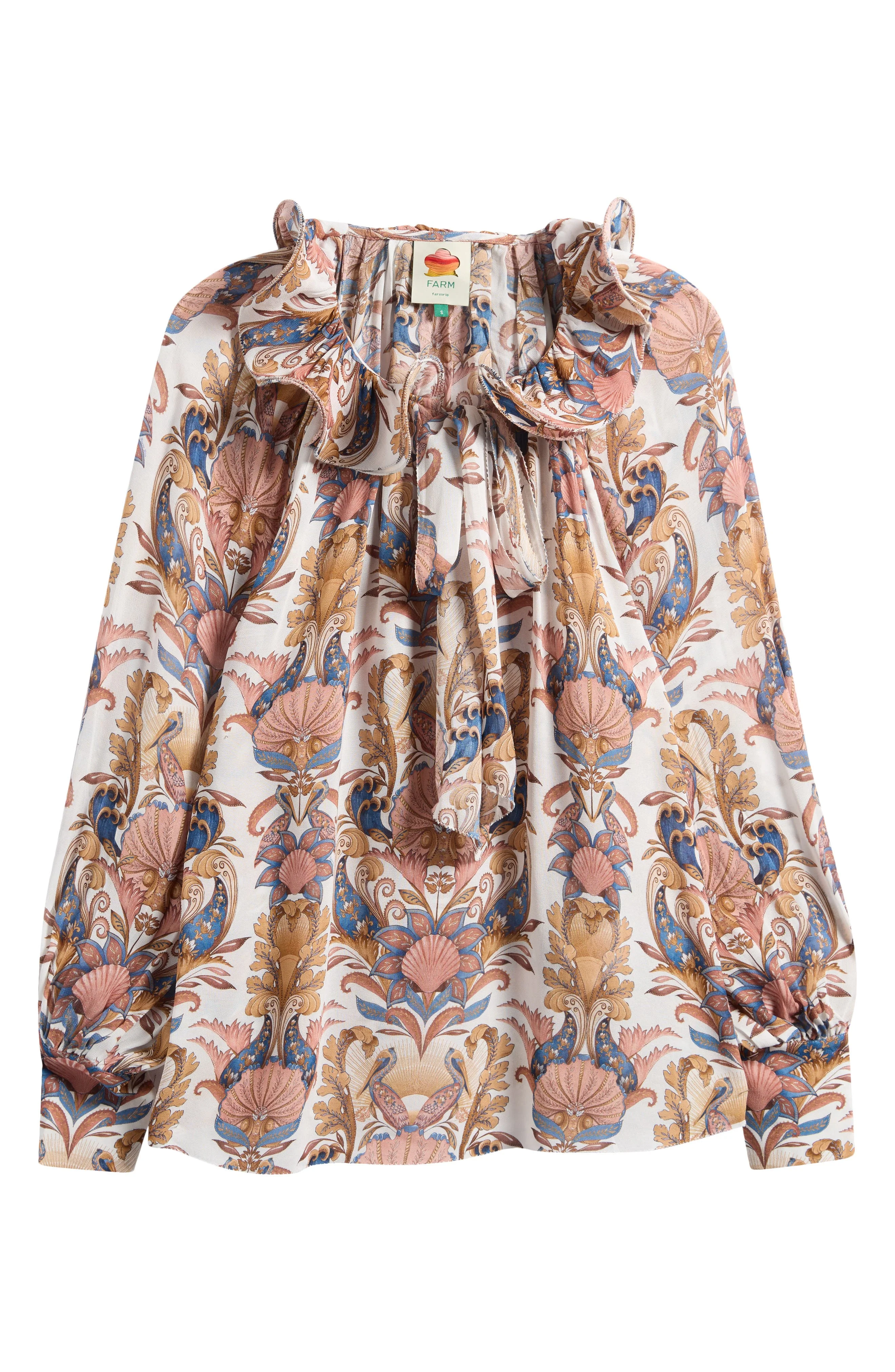FARM Rio Sea Garden Tie Neck Top in Sea Garden Off-White at Nordstrom