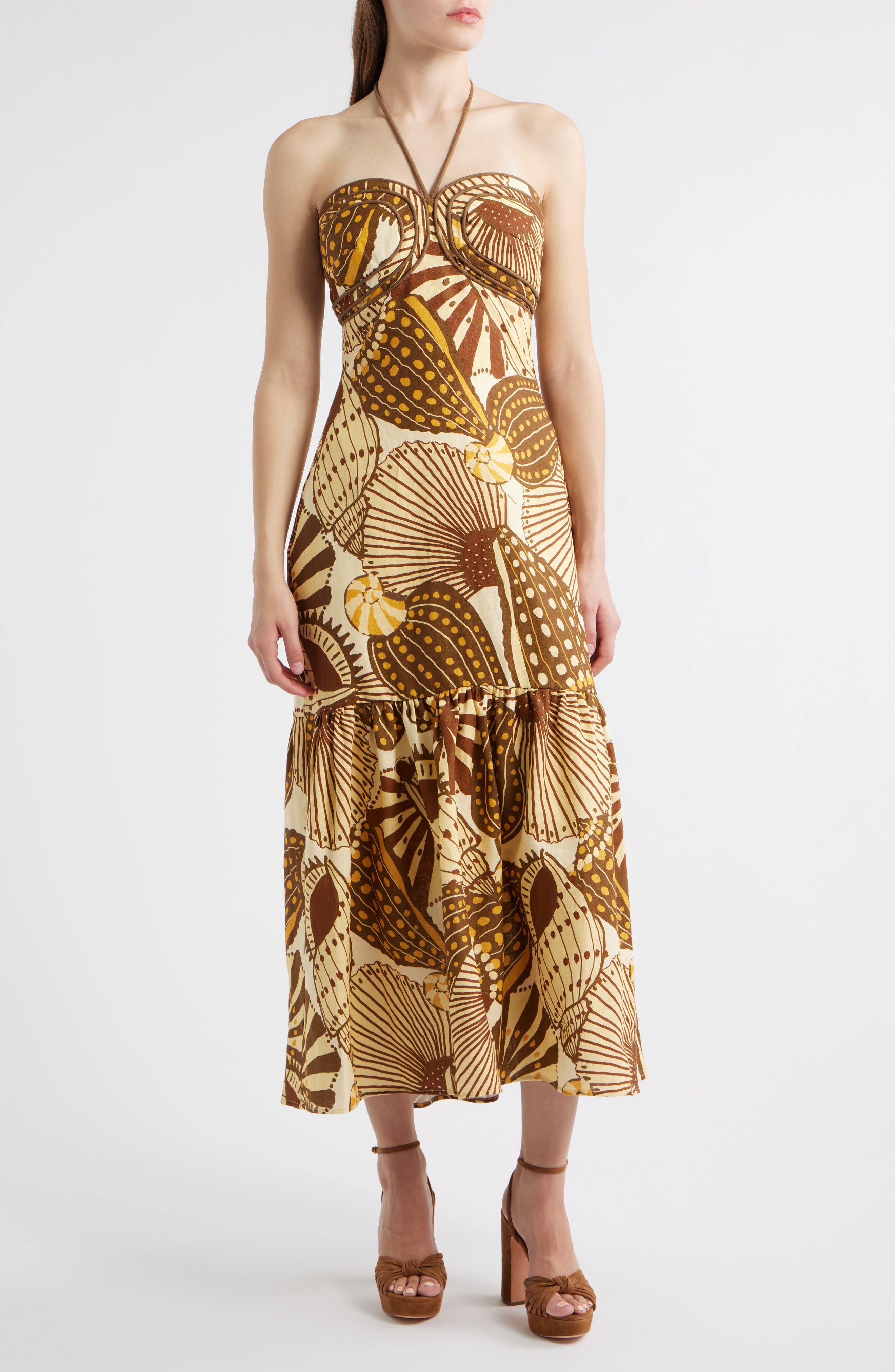 FARM Rio Shell Mix Sand Linen Dress in Caramel at Nordstrom