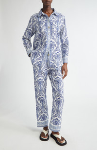 A breathable linen blend brings texture to a breezy button-up shirt that's printed in a playful motif of paisley palm trees and finished with natural-shell buttons. 29" length (size Medium) Front button closure Spread collar Long sleeves with button cuffs Chest patch pockets 55% linen, 45% viscose Dry clean or machine wash, tumble dry Imported FARM Rio will plant one tree for every purchase of its product as a partner of the global reforestation nonprofit One Tree Planted Hispanic & Latinx Owned/Founded