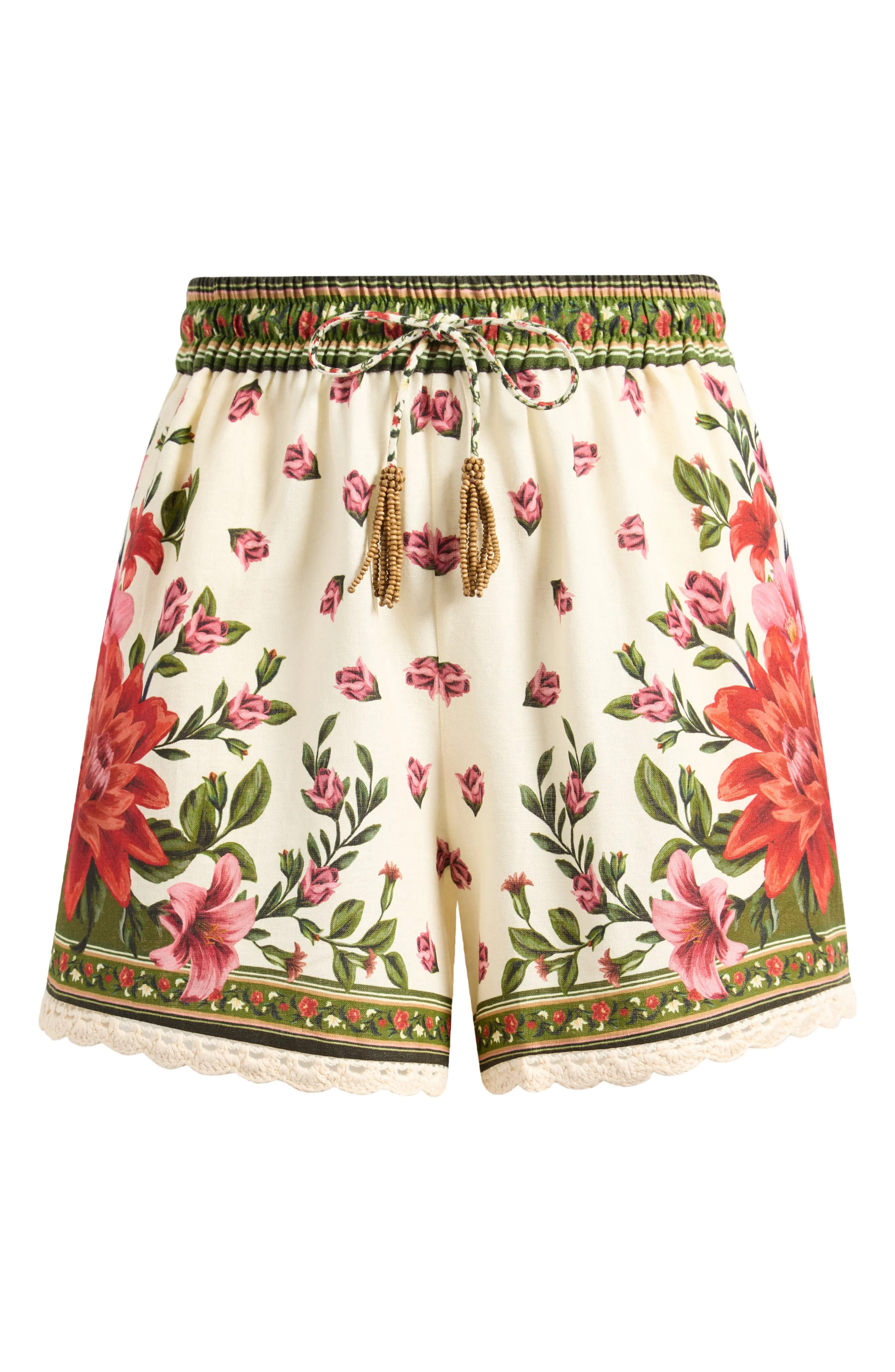 The brand's penchant for captivating prints is elegantly evident in linen-blend shorts secured with a beaded tassel tie. 3 1/2" inseam; 13" front rise Elastic/drawstring waist Side-seam pockets 55% linen, 45% viscose Machine wash, dry flat Imported This brand will plant one tree for every purchase of its product as a partner of the global reforestation nonprofit One Tree Planted Hispanic & Latinx Owned/Founded
