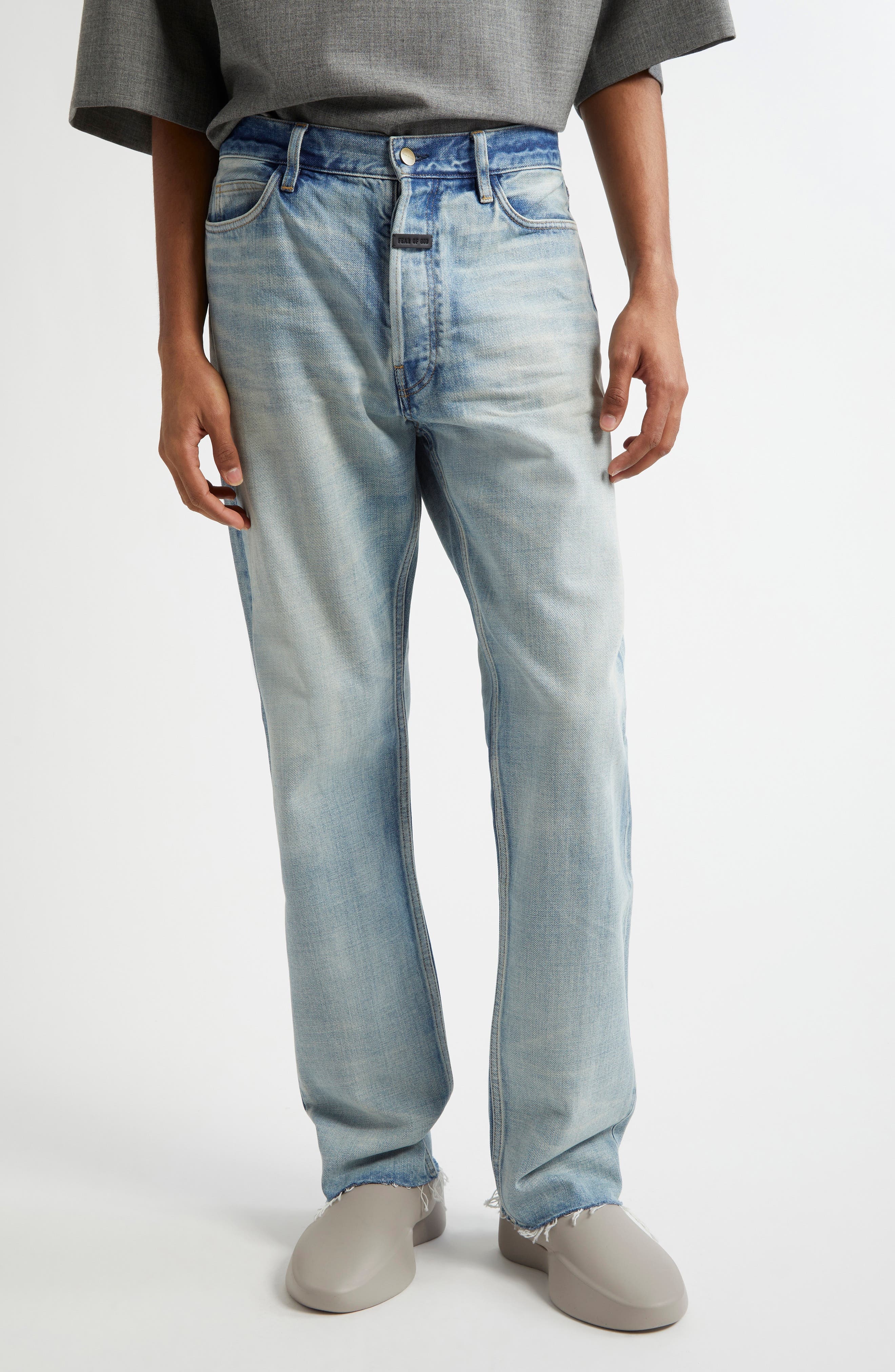 Fear of God Five-Pocket Raw Hem Straight Leg Jeans in Light Indigo at Nordstrom