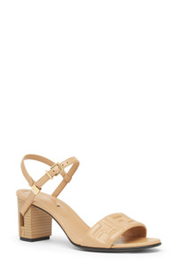 Fendi keeps the silhouette simple to let the details of this sandal steal the show. Embossed FF logos bring iconic branding to the look, while a slender leather ankle strap wraps through the striking cutout stacked heel. 2 1/2" (65mm) heel Adjustable ankle strap with buckle closure Leather upper, lining and sole Made in Italy Designer Shoes