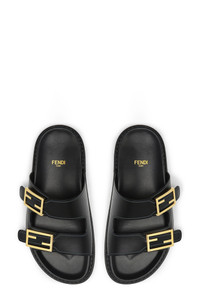 Decorative FF buckles inspired by Fendi's Baguette line bring dimension and distinction to the polished straps of this Italian-crafted slide sandal. Straps with nonfunctional buckle closures Leather upper and lining/synthetic sole Made in Italy Women's Designer Shoes