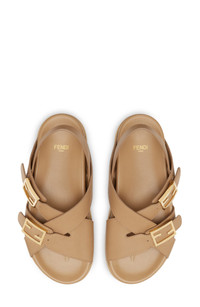 Decorative FF buckles inspired by Fendi's Baguette line bring dimension and distinction to the crisscrossing straps of this Italian-crafted slingback sandal in smooth calfskin. Adjustable straps with buckle closures Cushioned, contoured footbed with arch support Leather upper and lining/synthetic sole Made in Italy Designer Shoes