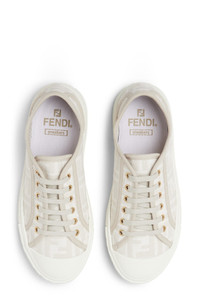 Double-F logos brand this laid-back sneaker topped with a protective toe cap. 1" (25mm) heel; 3/4" platform (size 35) Lace-up style Removable insole Textile upper and lining/rubber and synthetic sole Made in Italy Women's Designer Shoes