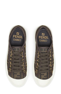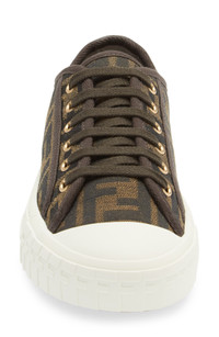 Double-F logos brand this laid-back sneaker topped with a protective toe cap. 1" (25mm) heel; 3/4" platform (size 35) Lace-up style Removable insole Textile upper and lining/rubber and synthetic sole Made in Italy Women's Designer Shoes
