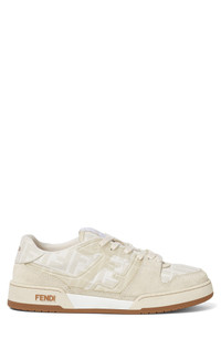 The iconic double-F logo makes a low-key appearance on a court-inspired sneaker set in a two-tone cupsole embossed with logo lettering. Lace-up style Leather and textile upper/textile lining/synthetic sole Made in Italy Designer Shoes