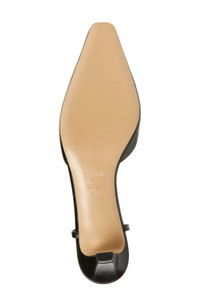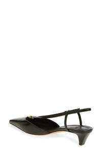 Fendi's signature FFold detail brings gilded polish to this calfskin-leather pump boasting strappy open sides and a low kitten heel. 1 1/4" (32mm) heel Adjustable slingback strap with buckle closure Leather upper, lining and sole Made in Italy Designer Shoes