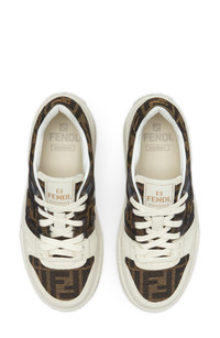 FF appliques and logo-jacquard canvas lend signature style and dimension to this Italian-crafted sneaker built on a hardy platform sole. 2" (50mm) platform Lace-up style Leather and textile upper/textile lining/rubber sole Made in Italy Designer Shoes