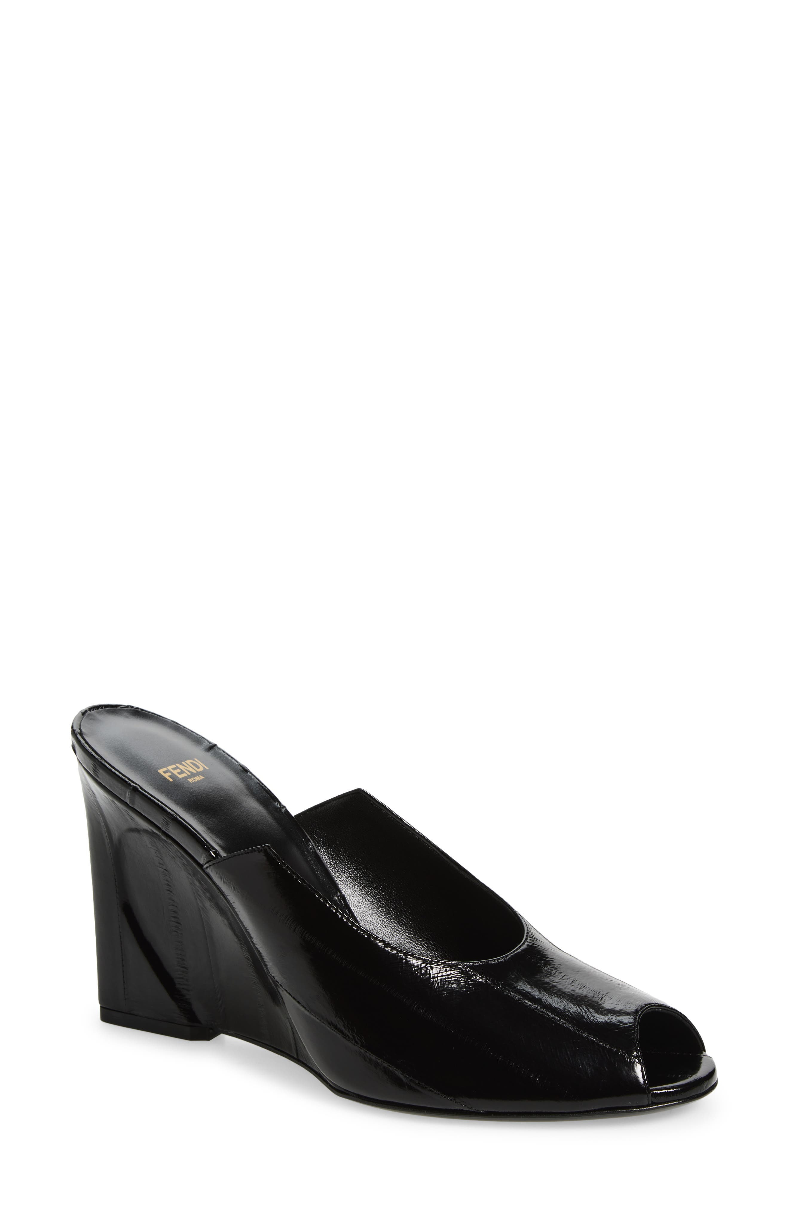 Fendi Show Genuine Eel Wedge Mule in Nero at Nordstrom