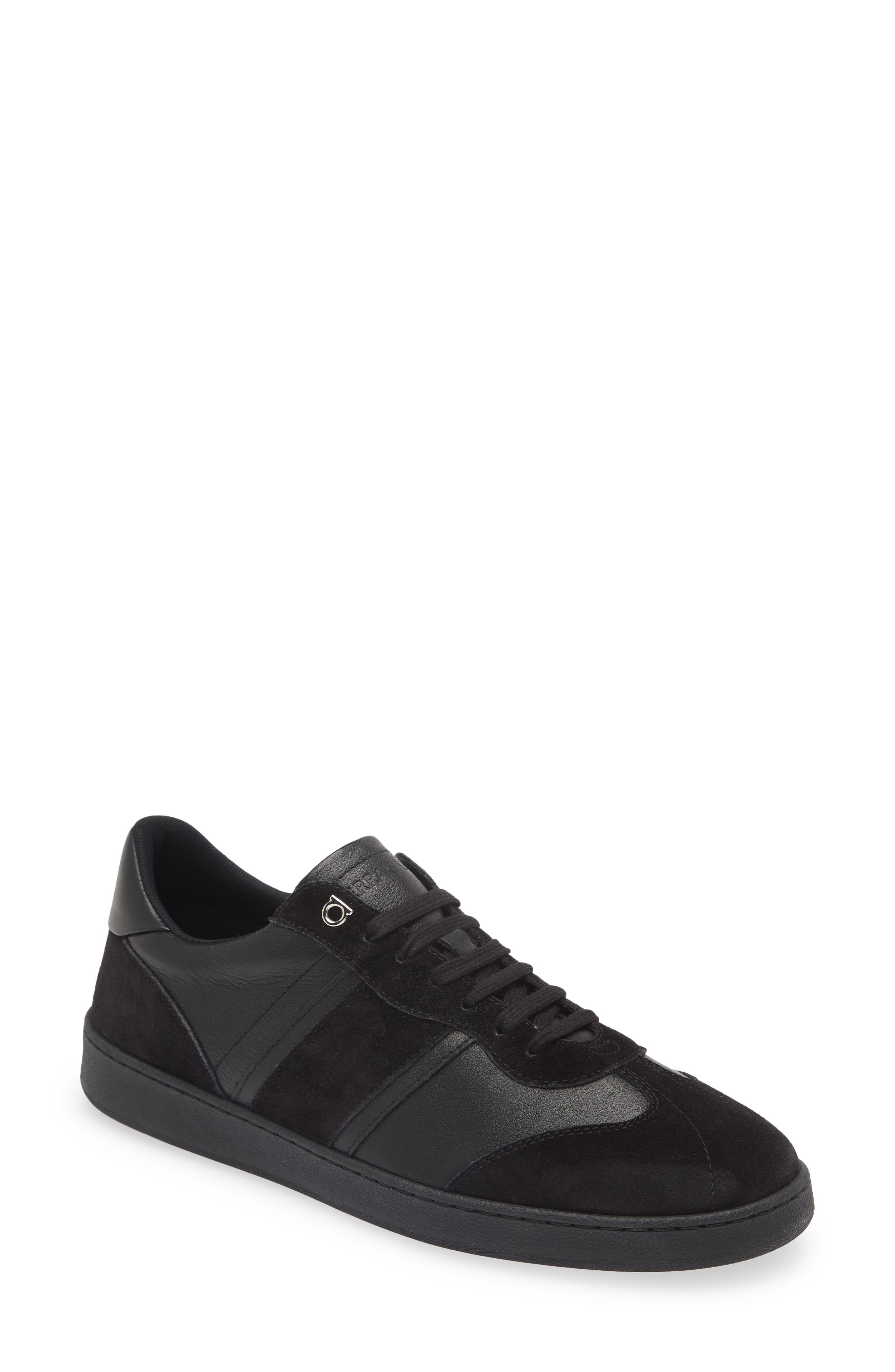 A vintage-inspired profile defines this Italian-crafted low-top sneaker made of calfskin leather and suede with the founder's signature at the heel. Lace-up style Removable insole Leather upper/leather and textile lining/rubber sole Made in Italy Designer Shoes