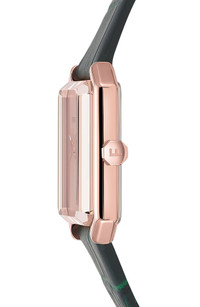 A distinctively shaped case gives iconic modernity to the silhouette of this charming watch finished with an unmarked sunray dial 27mm x 34mm case; 16mm band width Buckle closure Swiss quartz movement Sapphire crystal face Stainless steel with goldtone plate/leather Swiss made