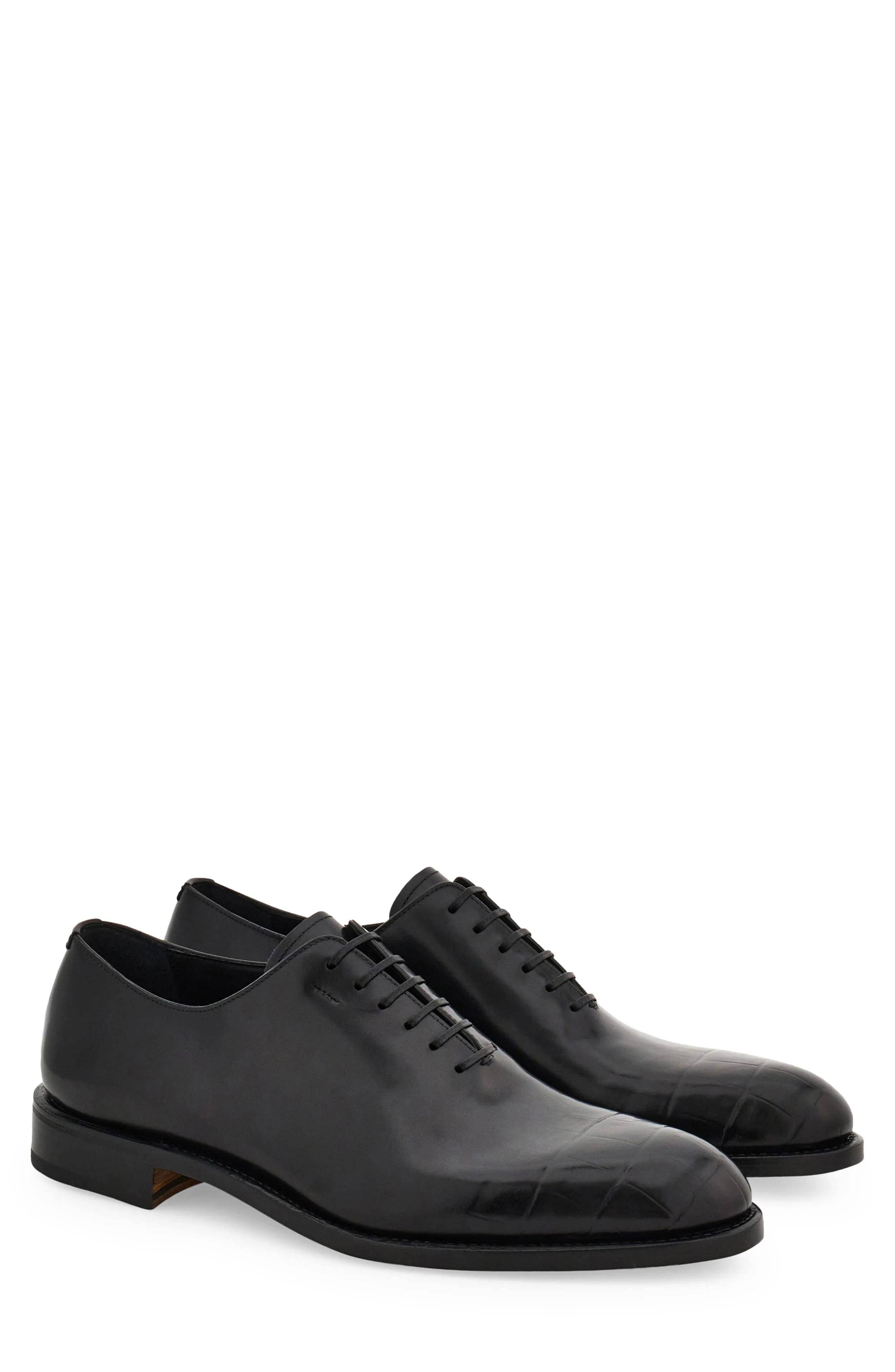 FERRAGAMO Angiolo Croc Embossed Wholecut Oxford in Nero Nero Nero at Nordstrom