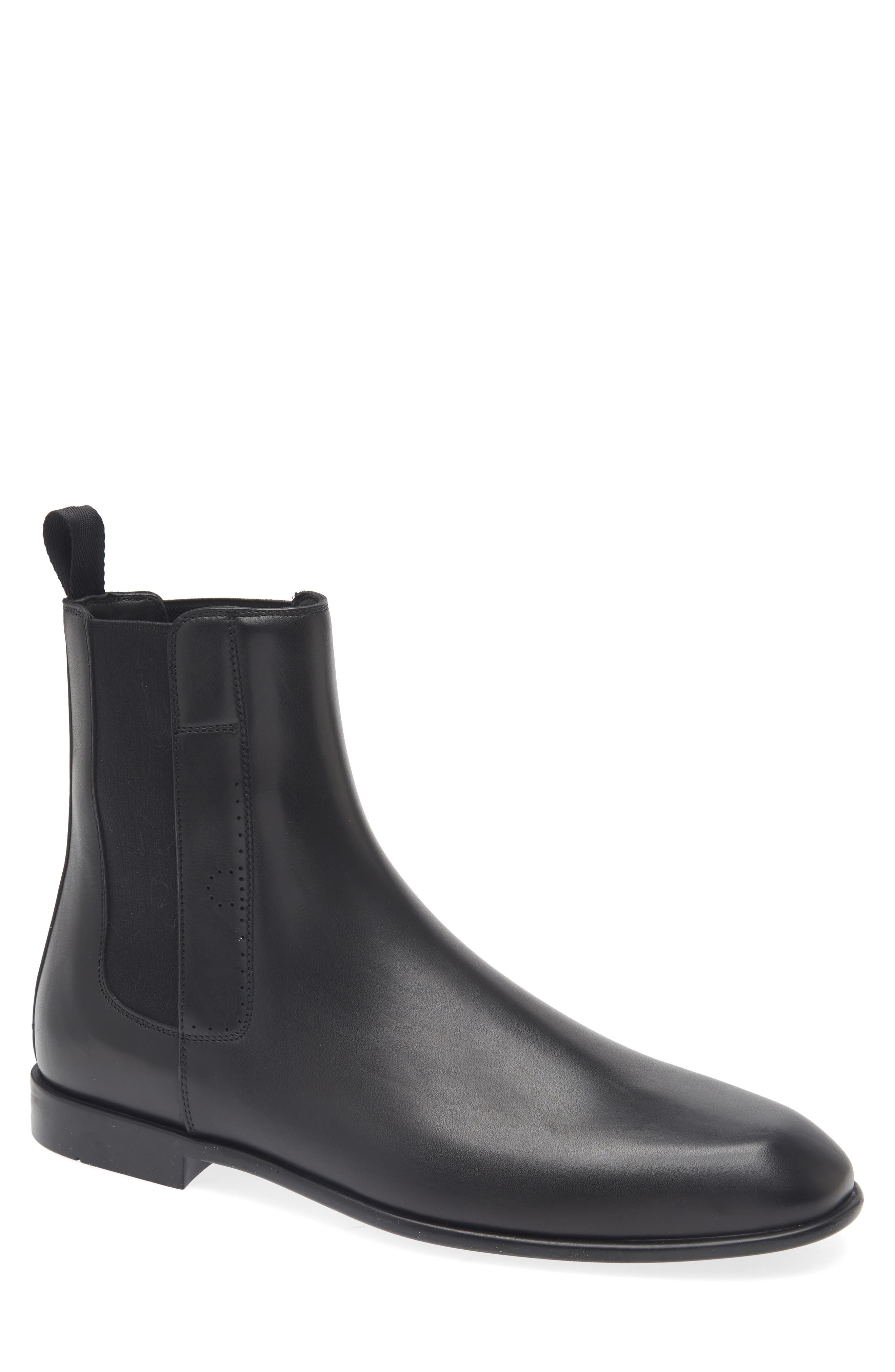 Microscopic perforations along the side eke out a house-signature Gancio logo on this streamlined Chelsea boot made from rich Italian calfskin leather. Pull-on style with elastic gore insets Leather and textile upper/leather lining/leather and synthetic sole Made in Italy Designer Shoes