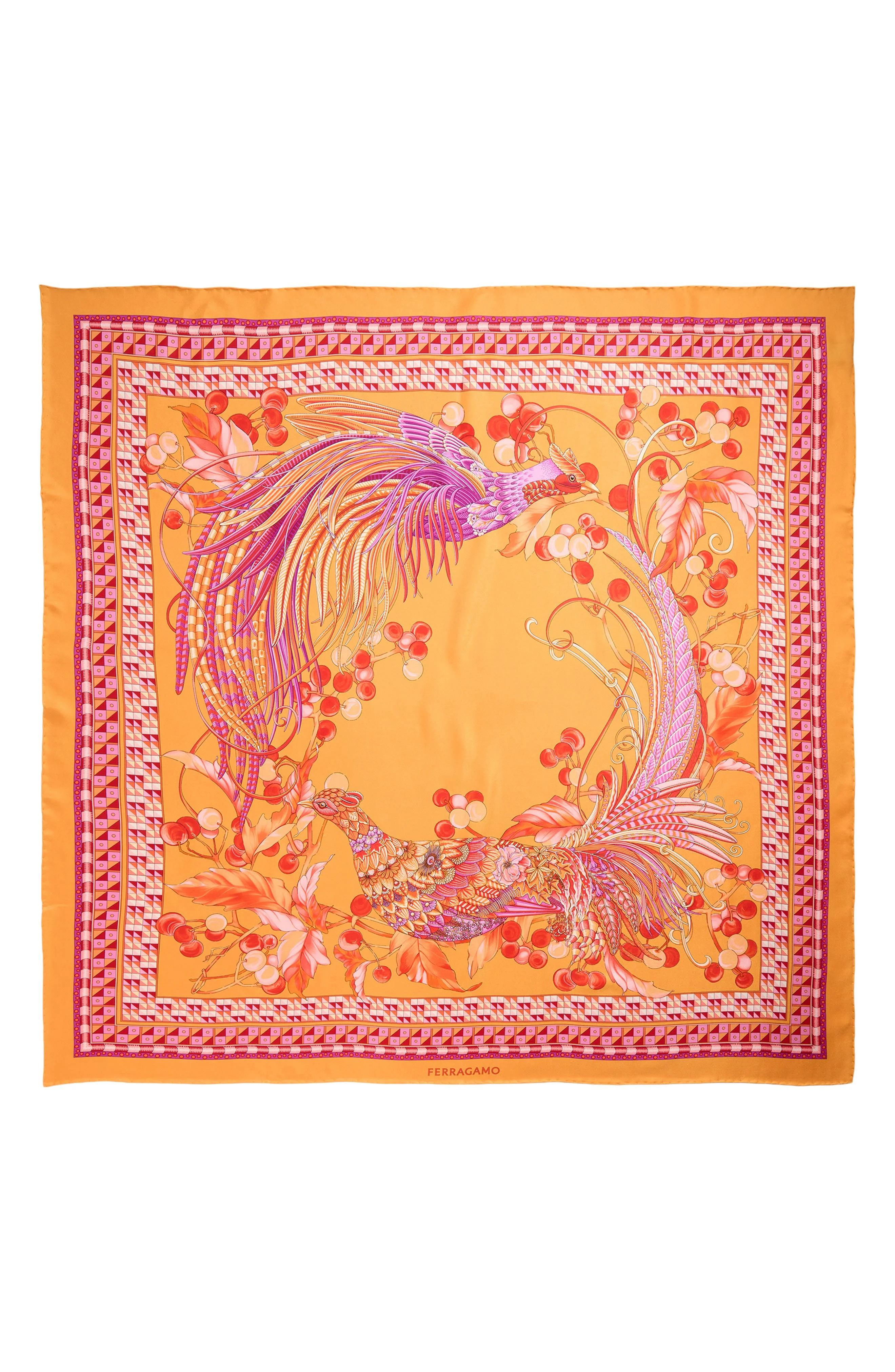 FERRAGAMO Animals Print Silk Square Scarf in Arancio Fucsia at Nordstrom