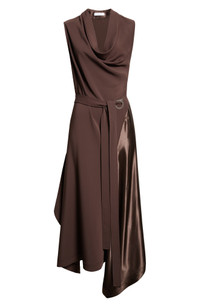 FERRAGAMO Belted Asymmetric Satin & Cady Dress in Expresso at Nordstrom