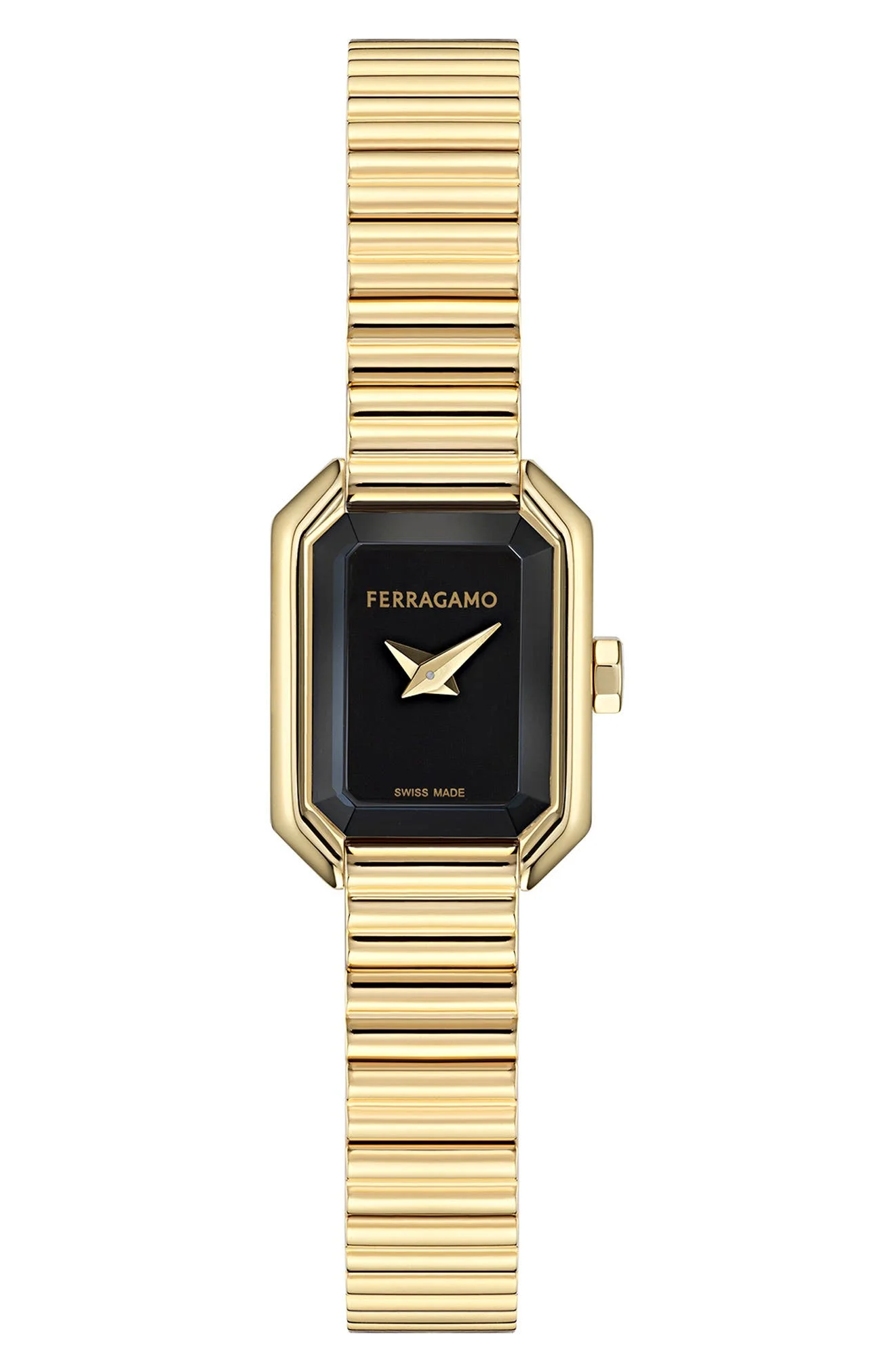 FERRAGAMO Crystal Petite Bracelet Watch, 15mm x 20mm in Yellow Gold/black at Nordstrom