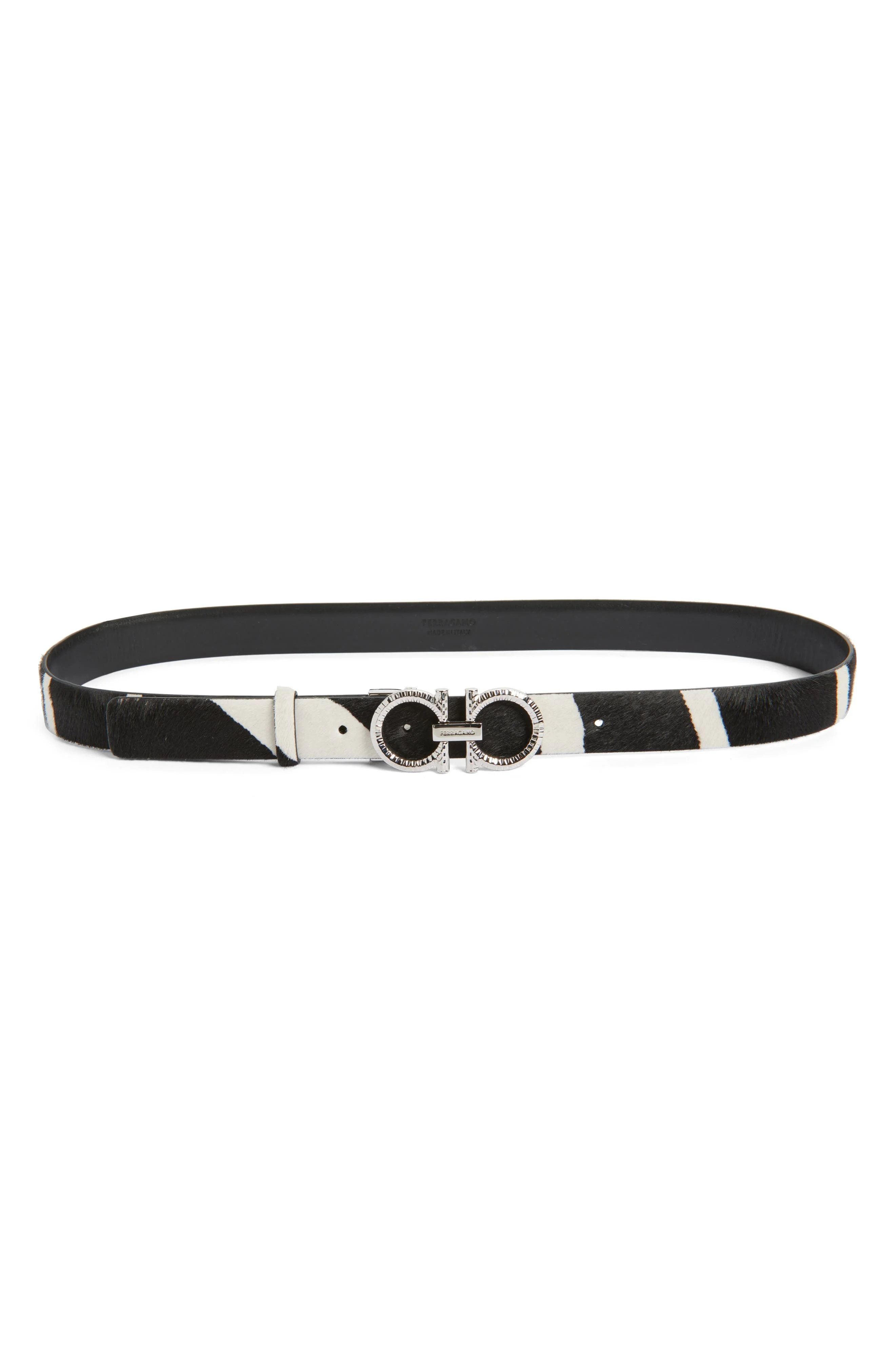 FERRAGAMO Donna Calf Hair Belt in Kasba Bianco/Nero at Nordstrom