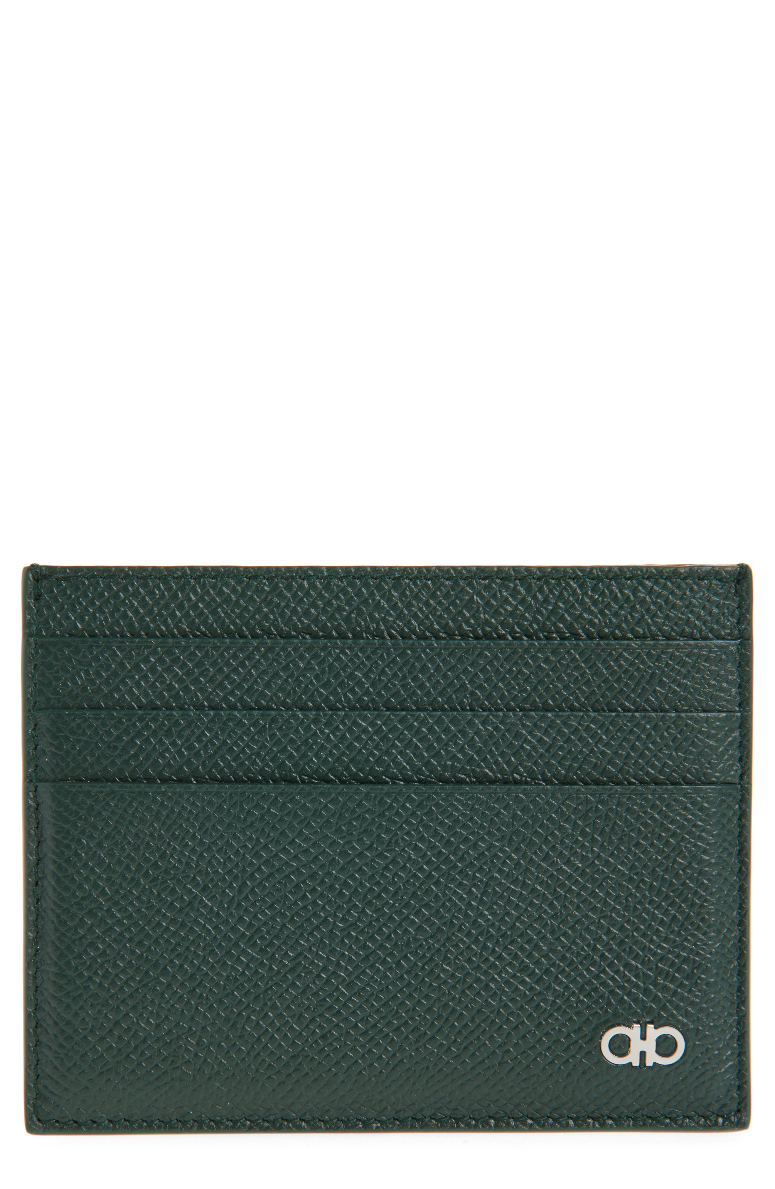 FERRAGAMO Double Gancio Calfskin Leather Card Case in Moss at Nordstrom