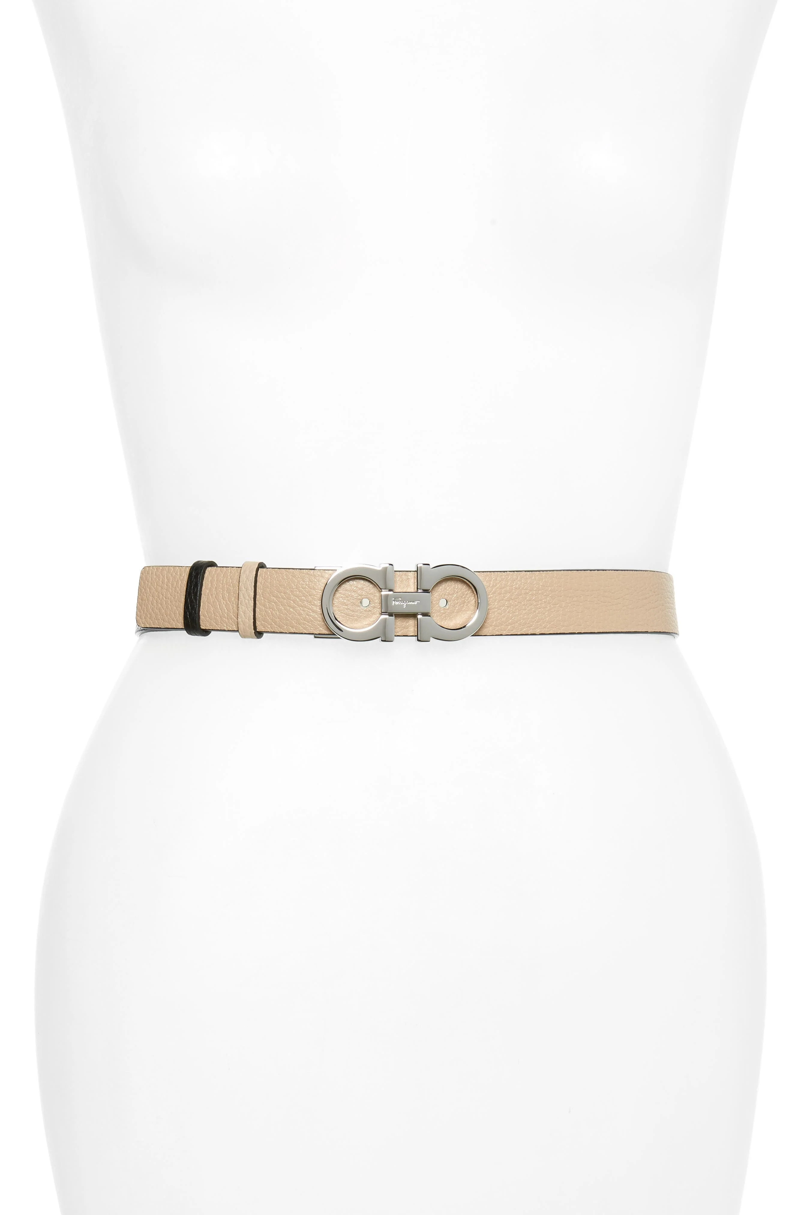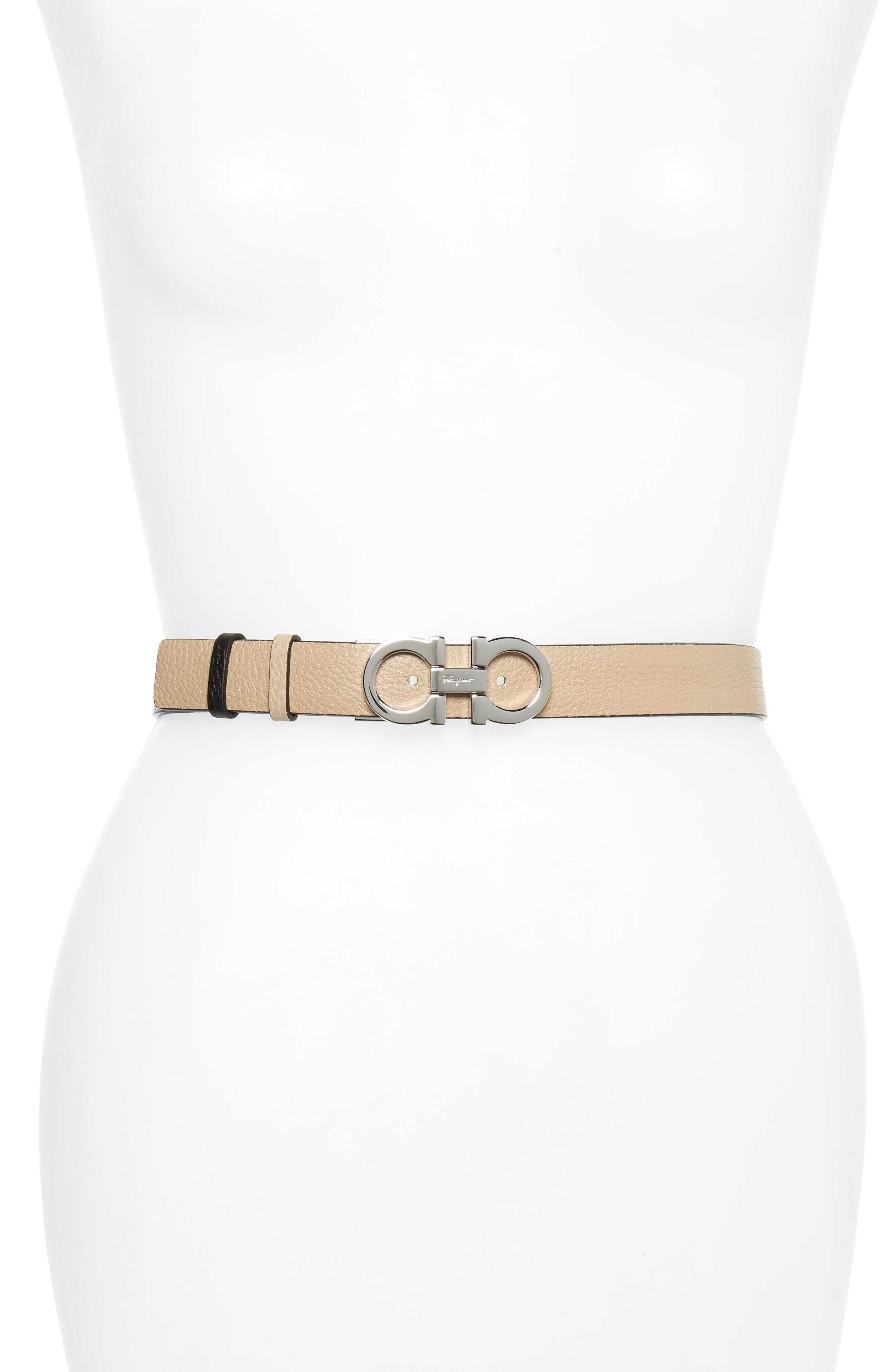 FERRAGAMO Double Gancio Reversible Leather Belt in New Bisque/Nero at Nordstrom