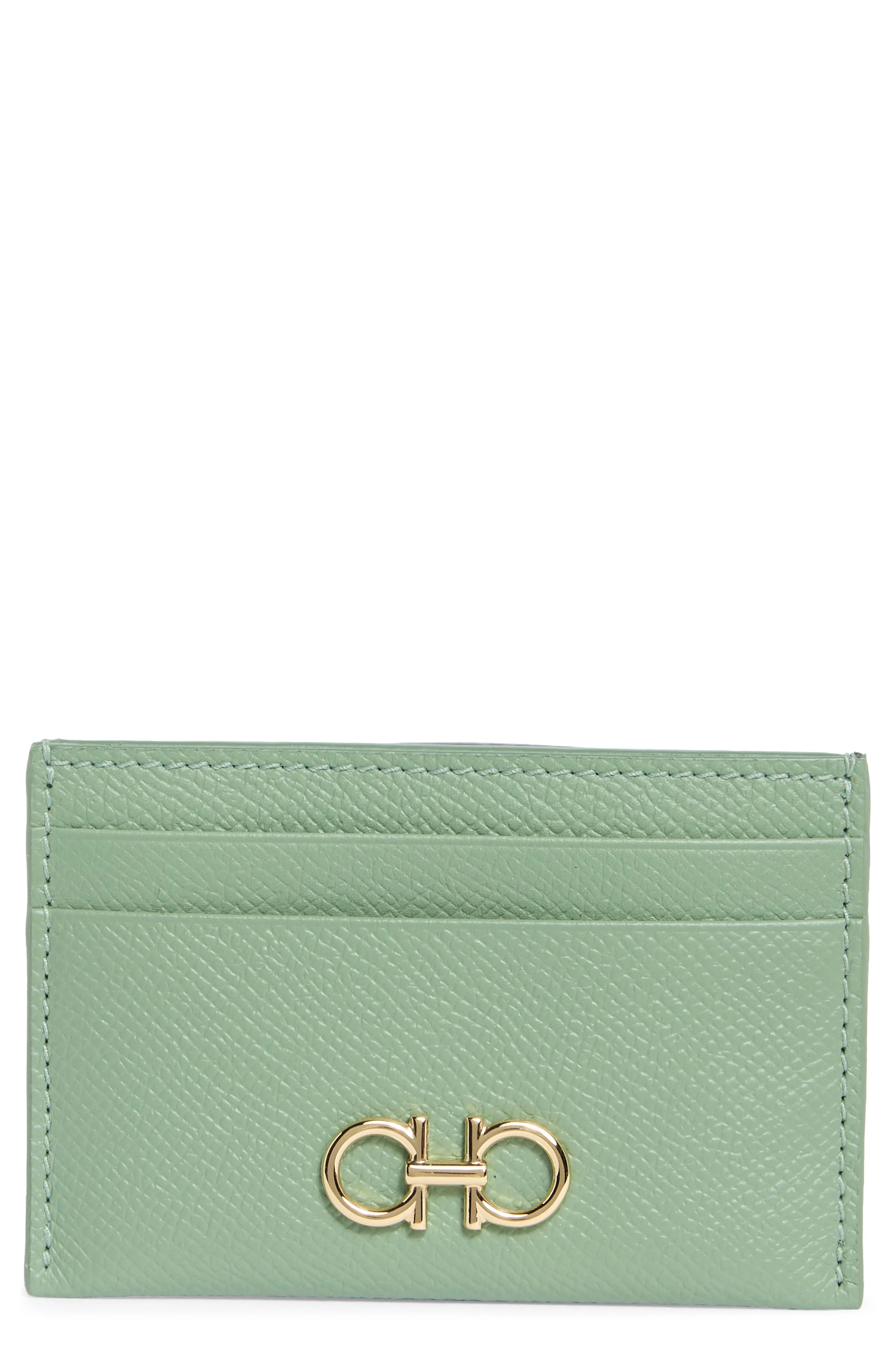 FERRAGAMO Gancini Leather Card Case in Seagrass/Lucky Charme at Nordstrom