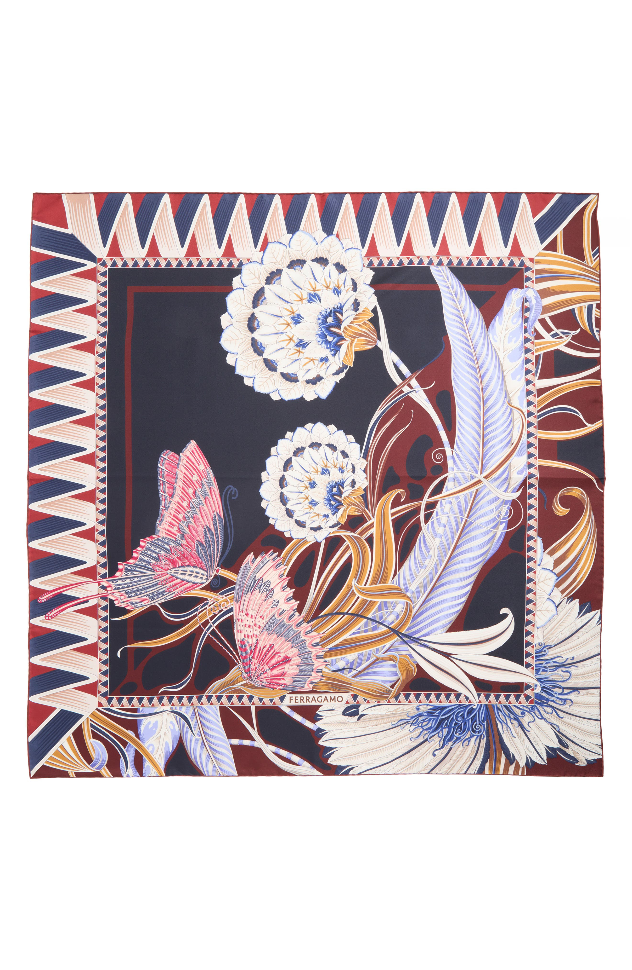 Archival motifs take flight on this hand-finished Italian-silk scarf that doubles your styling options as it reverses between two heritage patterns. 35 1/4" square 100% silk Dry clean Made in Italy