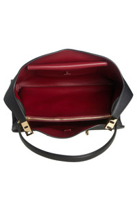 Extended tabs secured with Gancio flip-locks appear to embrace this retro-inspired bag crafted of supple calfskin leather and finished with a contrast lining. Bridge-clip closure Shoulder strap Interior zip pocket Protective metal feet Leather lining Leather Made in Italy Designer Handbags