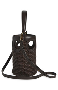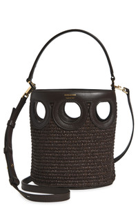 FERRAGAMO Mini Gancio Outline Raffia Bucket Bag in T Moro/Testa Di Moro at Nordstrom