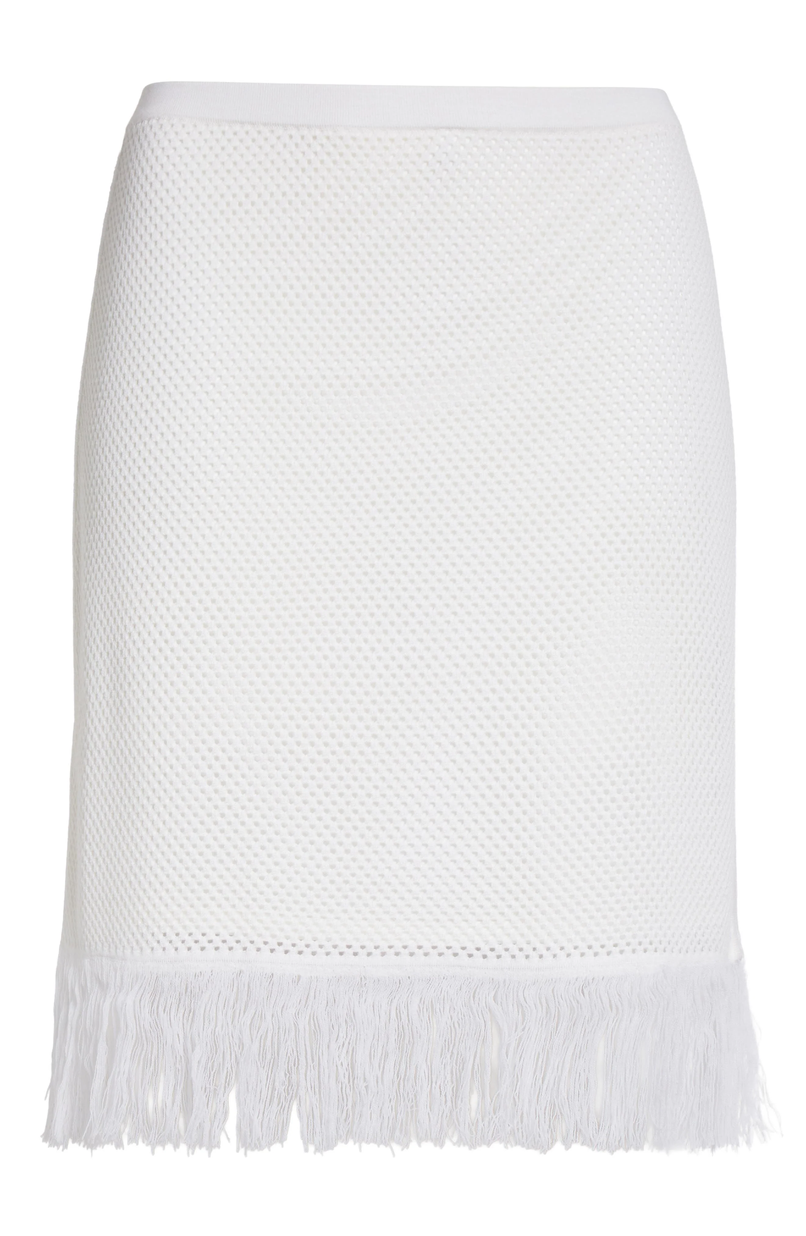 FERRAGAMO Open Knit Fringe Short Sleeve Virgin Wool Sweater Skirt in White at Nordstrom