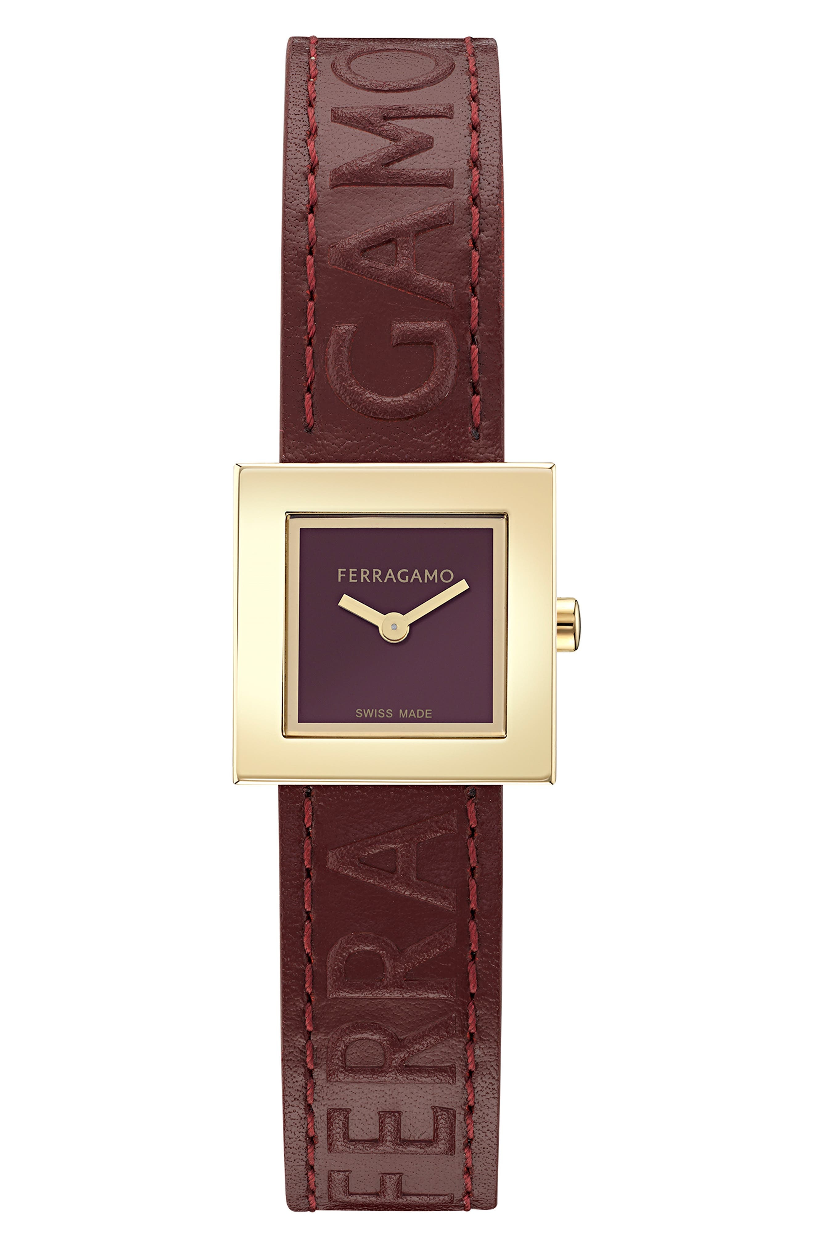 FERRAGAMO Portrait Leather Strap Watch, 20mm in Ip Yellow Gold at Nordstrom