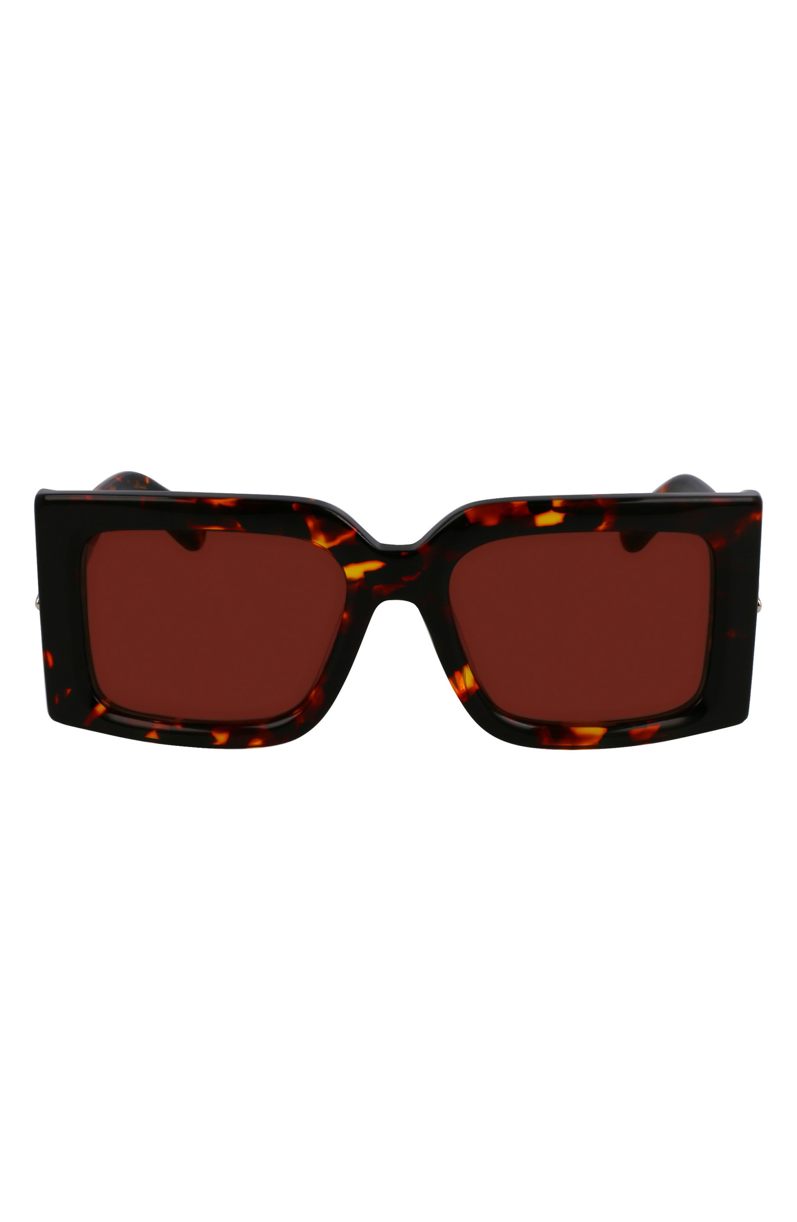 Debossed logos stand out at the temples of Italian-made sunglasses shaped in a bold rectangular silhouette and fitted with scratch-resistant CR-39 lenses. 55mm lens width; 19mm bridge width; 140mm temple length 100% UV protection CR-39 lenses Prescription compatible Acetate Made in Italy