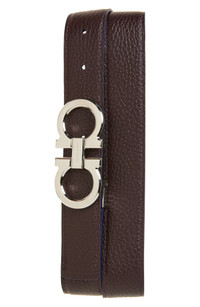 FERRAGAMO Reversible Double Gancio Leather Belt in Midnight Oxblood at Nordstrom