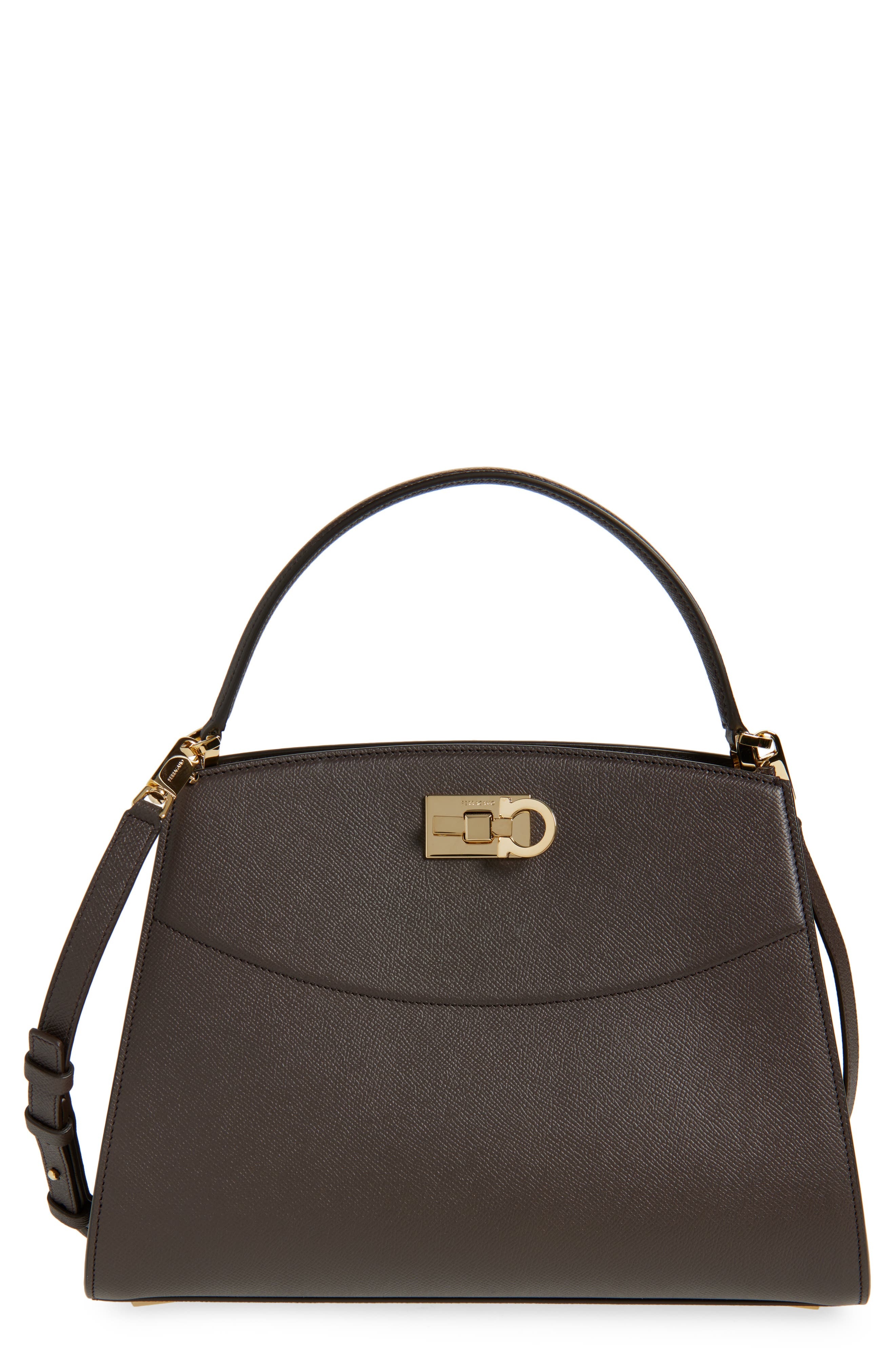 FERRAGAMO Small Studio Box Leather Top Handle Bag in Testa Di Moro at Nordstrom
