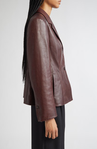 Impeccable tailoring combines with rich calfskin leather to create this elevated take on a classic blazer, here shaped with vertical darting to cinch in the silhouette. Front button closure Notched lapels One-button cuffs Front welt pockets Lined Leather Professional leather clean Made in Italy Designer Clothing