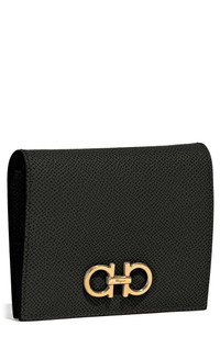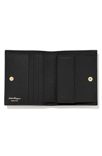 Secure cards, cash and coins in signature Ferragamo style with this leather wallet done in a compact silhouette highlighted by gleaming double-Gancio hardware. Snap closure Interior currency pocket; snap coin pocket; four card slots Leather Made in Italy