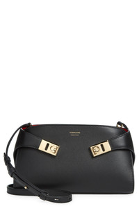 Extended tabs secured with Gancio flip-locks appear to embrace this retro-inspired bag crafted in an accordioned structured silhouette of calfskin leather. The crossbody is removable, allowing the look to be carried as a clutch. Top zip with flip-lock tabs closure Removable, adjustable crossbody strap Two interior card slots Leather lining Leather Made in Italy Designer Handbags