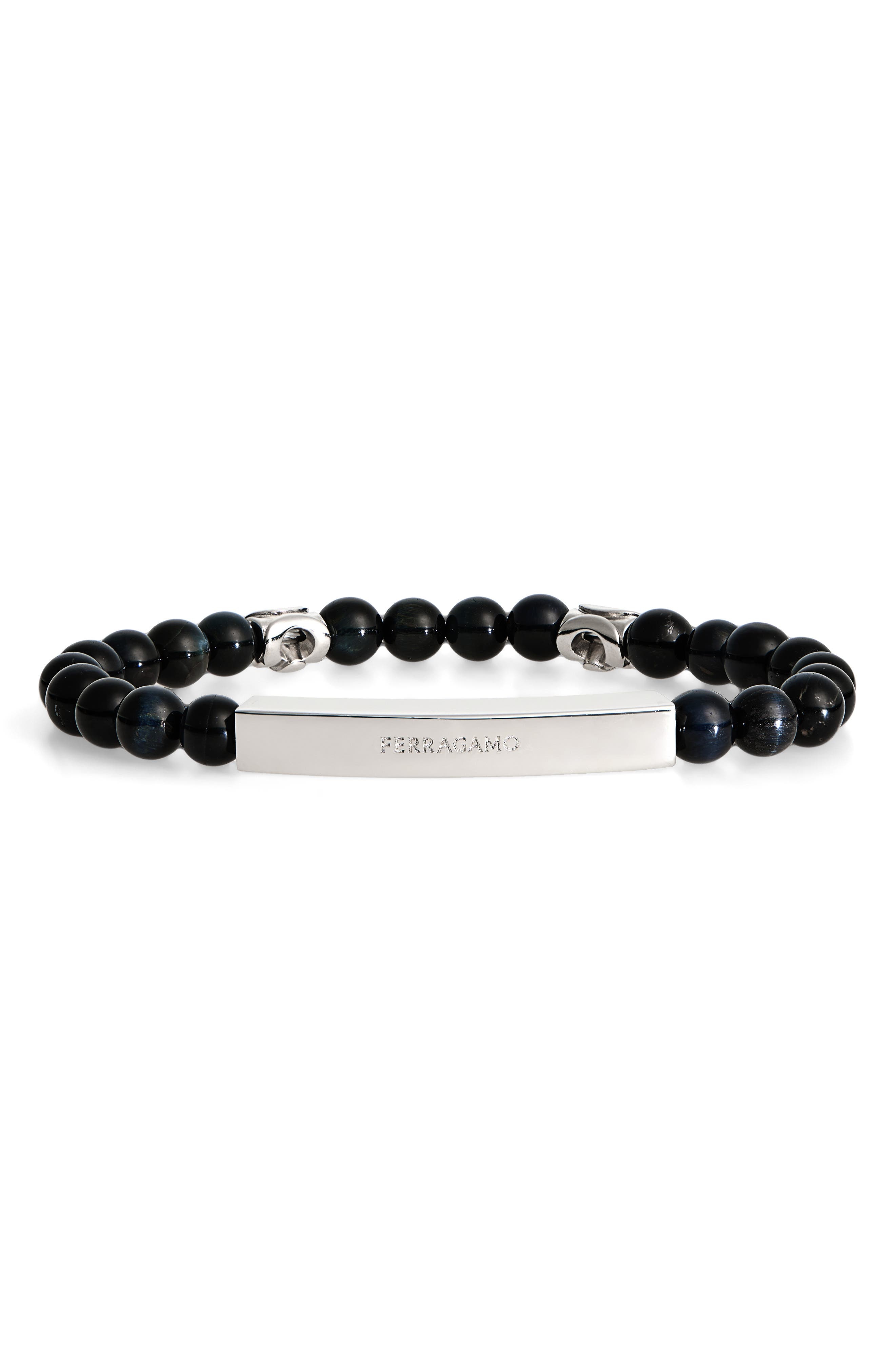 Beads of falcon's eye stone add natural color to this Italian bracelet featuring logo-engraved plaque hardware. Falcon's eye/silvertone plate Made in Italy